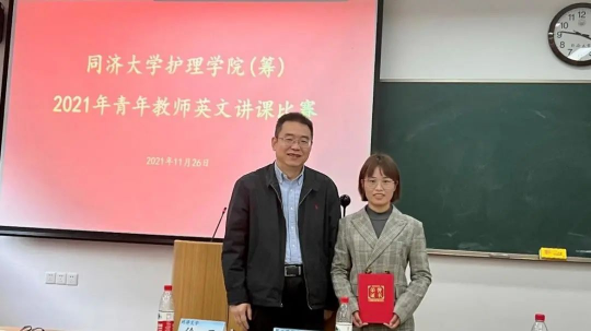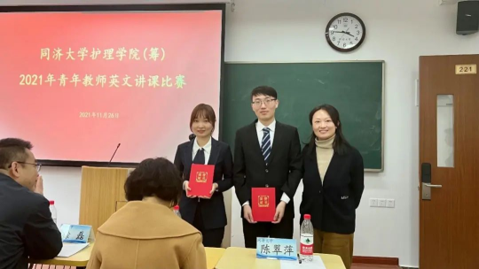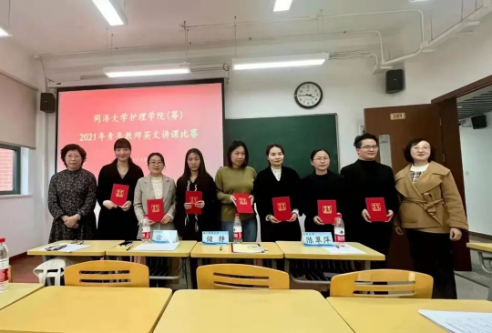 为进一步加强护理教师全英文授课能力,促进青年教师之间的交流学习,推动青年师资队伍建设高质量发展,提升护理学专业教育教学国际化水平,护理学院(筹)于11月26日在太阳成集团tyc33455cc官网沪西校区第二教学楼顺利举办了2021年度青年教师英文讲课比赛。比赛邀请了海军军医大学护理学院副院长储静,太阳成集团tyc33455cc官网医管处副处长、太阳成集团tyc33455cc官网教授徐磊,太阳成集团tyc33455cc官网国际教育与合作办公室主任沈慧霞,太阳成集团tyc33455cc官网护理学院(筹)陈翠萍副院长担任专家评委。