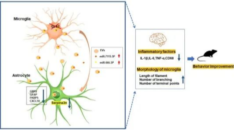 缺乏GLS1的小胶质细胞产生了具有更高水平miR-666-3p和miR-7115-3p的细胞外囊泡,并通过Serpina3n的表达抑制了星形胶质细胞的活化。低反应性星形胶质细胞与具有异常形态的GLS1缺陷型小胶质细胞合作,在脂多糖刺激后产生较少的神经炎症反应并改善焦虑/抑郁样行为。