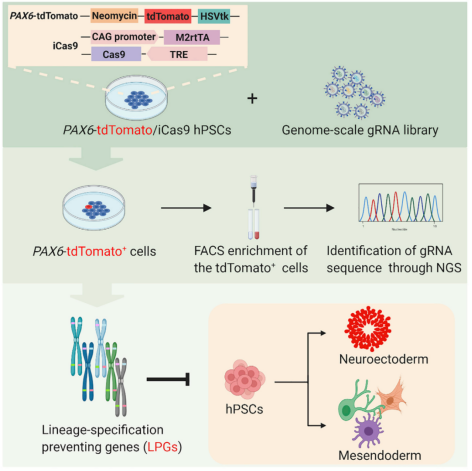 1、基于 CRISPR/Cas9 全基因组筛选研究人多能干细胞胚层分化的机制