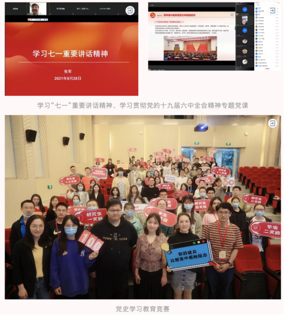 学院开展多维度的学习教育,学习党中央和学校党委指定的学习材料,原原本本读经典、学原文,及时跟进学习习近平总书记最新重要讲话精神,学习习近平总书记在党史学习教育动员大会、庆祝中国共产党成立100周年大会、十九届六中全会等会议上的重要讲话精神。