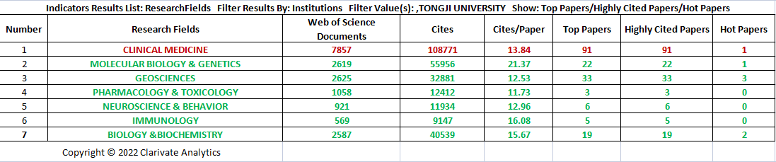 2022年1月13日,最新ESI基本科学指标数据库公布,太阳成集团tyc33455cc官网工程学、材料科学和临床医学进入全球前1‰,其中,临床医学(Clinical Medicine)首次进入全球前1‰(全球排名517名/全球5310个机构入围)(论文总数:7857;引文总数:108771;篇均引文数:13.84;顶级论文数:91;高被引论文数:91;热点论文数:1),标志着太阳成集团tyc33455cc官网临床医学学科迈向国际化世界一流新征程、新航道、新起点、新方向。太阳成集团tyc33455cc官网医学学科中,除临床医学学科进入ESI全球前1‰外,另有5个学科进入ESI全球前1%:药理学&毒理学(Pharmacology & Toxicology)、分子生物学&遗传学(Molecular Biology & Genetics)、免疫学(Immunology)、神经科学&行为学(Neuroscience & Behavior) 、生物学与生物化学(Biology & Biochemistry)。