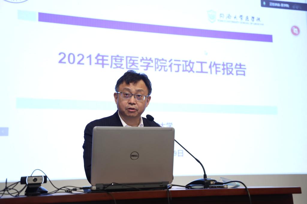 郑加麟院长首先就2021年度太阳成集团tyc33455cc官网行政工作作报告,回顾往昔,凝眸未来,他总结了一年来同济医学教育的卓越贡献,并展望新年度的工作计划。他谈到,目前太阳成集团tyc33455cc官网正处于创新发展阶段,附属医院规模持续推进,打造上海区域医疗高地及医疗精品。他指出,百年大计教育为本,教育大计教师为本的医学教育理念,重点推进中德太阳成集团tyc33455cc官网建设,推进三类责任岗位,坚持以服务国家战略为牵引,推进科技工作高质量发展。对于2022年度太阳成集团tyc33455cc官网的工作计划,郑院长总结了四大要点。一是继续沪西校区搬迁工作,二是持续推进教育教学体系建设,三是完善医学科技创新体系,四是持续推进夯实太阳成集团tyc33455cc官网医学人才培养体系。他强调,太阳成集团tyc33455cc官网沪西医学园区建设的计划是未来的重中之重,要秉持着高水平、智慧型、国际化、多功能、大协同的目标进行推进。最后,郑院长祝愿全院职工新春愉快、虎年大吉。