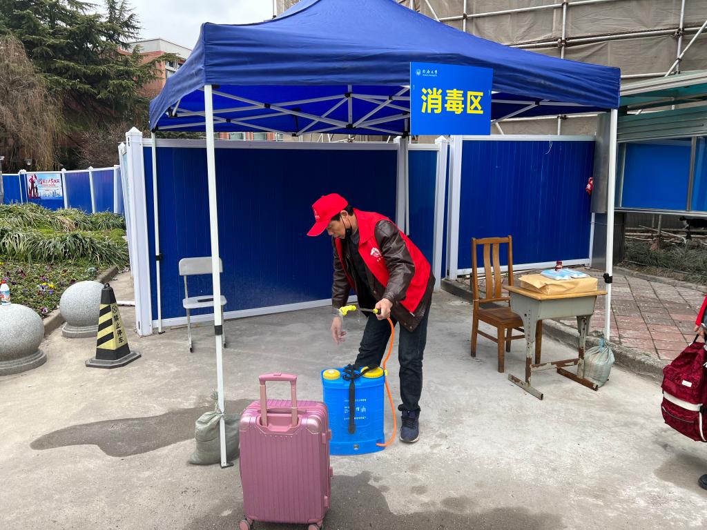 同医志愿者和值班老师坚守工作岗位,积极履职尽责——查看健康码、行程码、进校码,检查核酸报告,做好体温测定和手部消毒,同时协助开展行李消杀和寄存。由专人组织开展二次核酸检测,发放条码,登记入校。期间,学生处、保卫处、校团委和学院群策群力,为2000余名师生保驾护航,各项工作平稳有序推进。