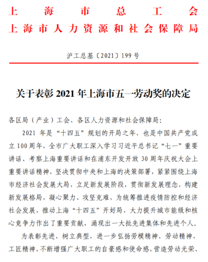 近日,上海市总工会、上海市人力资源和社会保障局联合发布《关于表彰2021年上海市五一劳动奖的决定》,太阳成集团tyc33455cc官网附属同济医院心血管内科主任刘学波荣获2021年上海市五一劳动奖章,太阳成集团tyc33455cc官网附属第一妇婴保健院产科班组,荣获2021年上海市工人先锋号。