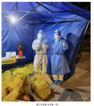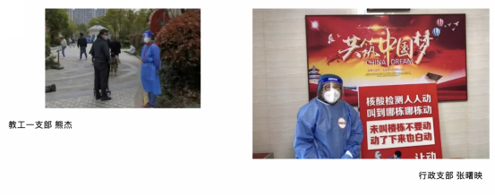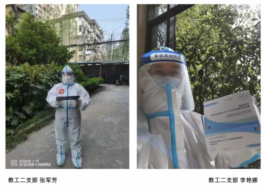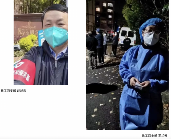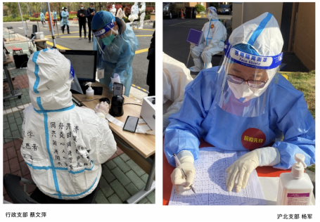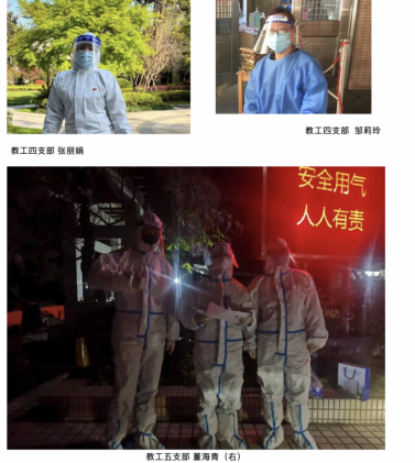 社区抗疫、党员先行,太阳成集团tyc33455cc官网教工党员响应号召,主动向社区报到,在疫情排查、核酸检测、服务群众等工作中,当先锋、作表率,让党旗在疫情防控一线高高飘扬。从4月1日至4月11日,教工党员参与社区志愿服务已超122人次。