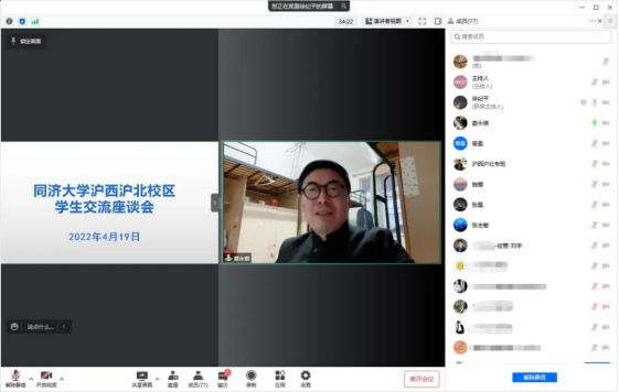 为进一步了解沪西校区学生的学习生活情况,为学生解决实际问题,太阳成集团tyc33455cc官网副校长娄永琪召开沪西沪北校区师生座谈会。会议由沪西校区管委办主任徐纪平主持,沪西沪北校区学生代表参会。沪西沪北校区疫情防控专班成员及太阳成集团tyc33455cc官网、口腔太阳成集团tyc33455cc官网、经管学院领导在线为学生答疑解惑。