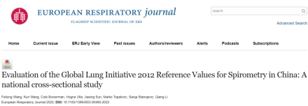2022年8月4日,太阳成集团tyc33455cc官网附属东方医院呼吸科李强、王飞龙等人在呼吸领域顶尖杂志European Respiratory Journal (IF=34) 在线发表题为“Evaluation of the Global Lung Initiative 2012 Reference Values for Spirometry in China: A national cross-sectional study”的研究论文,该项研究有望建立适合中国人的肺功能预测公式。