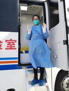 当学校发起PCR志愿者招募通知时,她又立刻报名入组并担起带队组长的职责,和队友们共赴战场。一个团队扛起一辆可随时开去任何地方的核酸检测车,去过浦东三林,出征过崇明长兴、驻扎在闵行浦江。她一人分管前后I区和III区,负责样本分发、试剂盒拆分、体系配制、物品传递、PCR扩增和报告初筛。每天提前到岗,提前清点物资并补足;最后离开,收拾垃圾清理区域。原本4-7天的服务期一直奋战到13天才圆满结束,工作时长共92.5小时,单日最长达12小时,处理样本量9755份。她用坚持和汗水为上海抗疫工作贡献自己的绵薄之力。