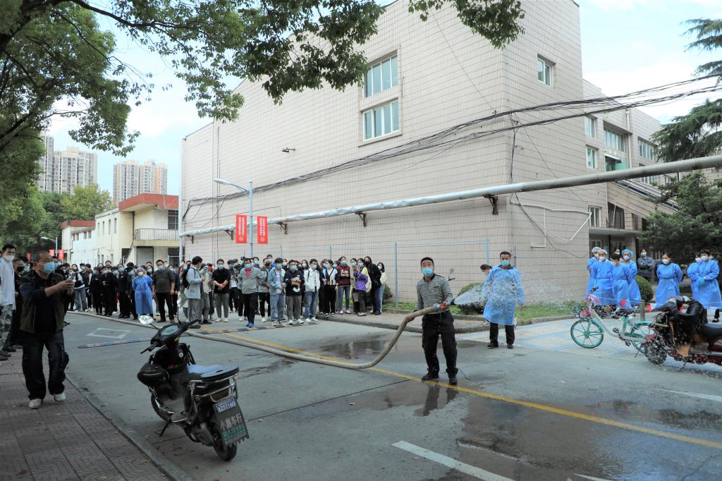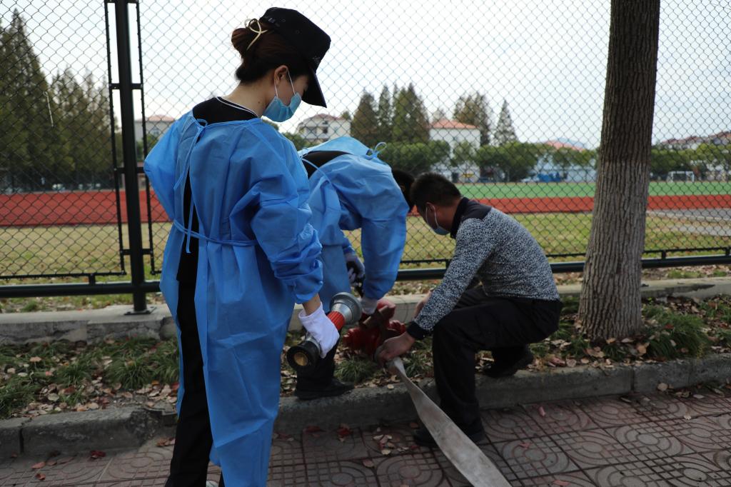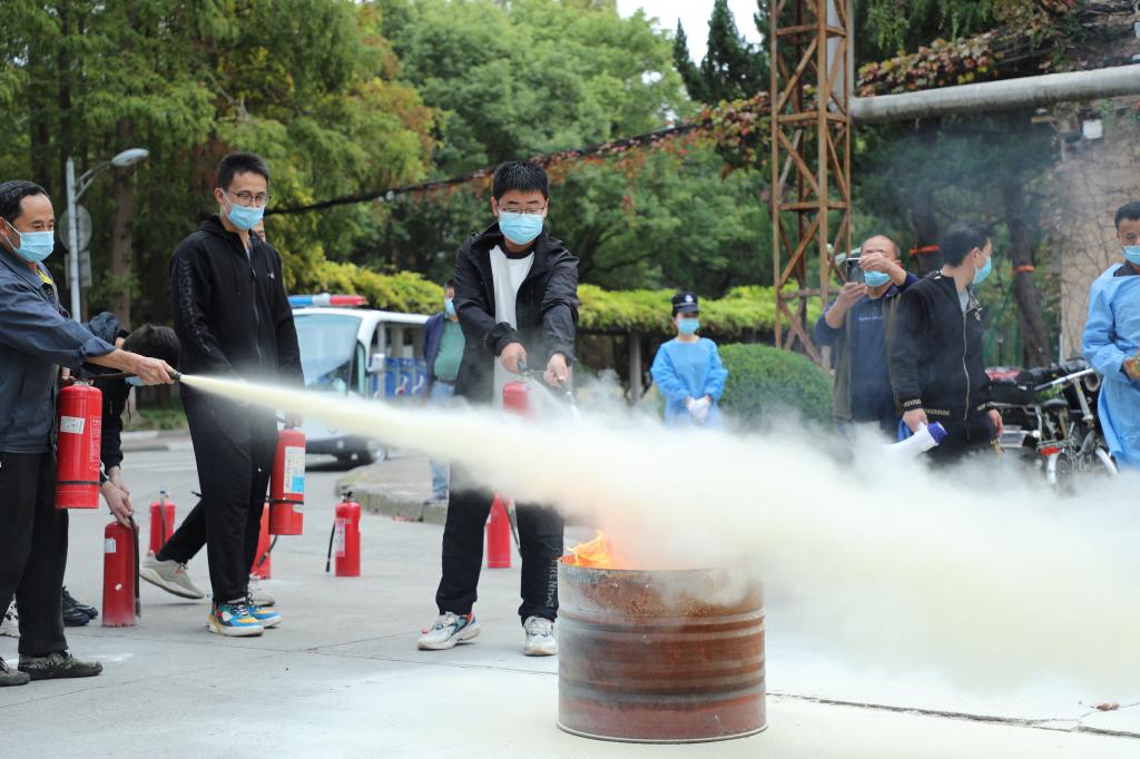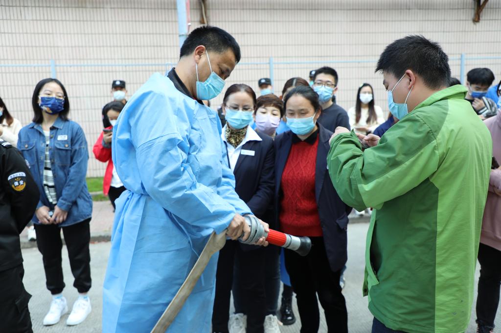 随后师生们学习了室内外消防栓链接方法、灭火器的使用方法,结合消防栓和灭火器使用方法进行了初期火灾的灭火演练。