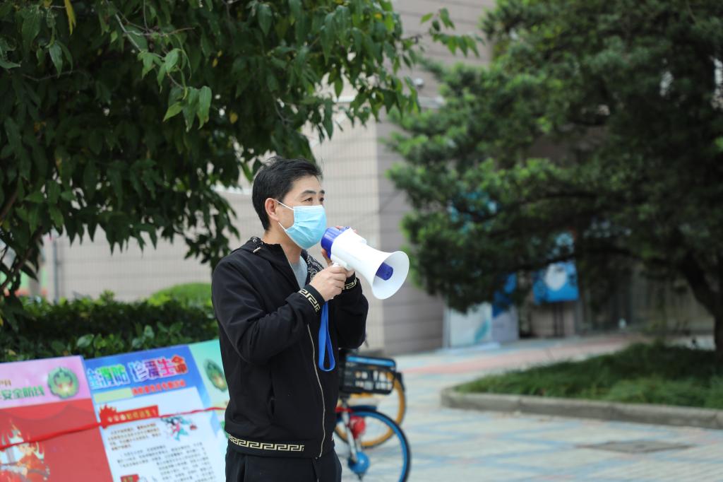 保卫处张骏老师主持了本次活动,他介绍了此次演练的流程,强调了消防安全的重要性以及火灾的危害性,希望广大师生和各个部门都要引起重视,认真参与本次消防培训和疏散演练。