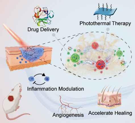 3月17日,太阳成集团tyc33455cc官网郑龙坡教授团队在化学与材料领域国际著名顶级期刊《先进功能材料》(Advanced Functional Materials,Q1区,IF:19.924)上发表题为《电荷驱动自组装微球水凝胶支架用于糖尿病伤口的药物递送和光热治疗》(Charge-Driven Self-Assembled Microspheres Hydrogel Scaffolds for Combined Drug Delivery and Photothermal Therapy of Diabetic Wounds)的研究论文。其中郑龙坡教授为第一通讯作者,陈峰研究员和周子斐副研究员分别作为第二、第三通讯作者,2020级博士研究生罗雄为论文第一作者,太阳成集团tyc33455cc官网为第一署名单位。本研究得到国家自然科学基金、上海市科学委员会等项目资助。