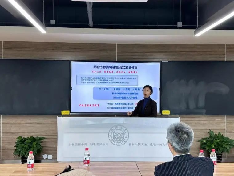 杨文卓作“依托OBE模块化虚拟教研室推进OBE新课程体系建设”的主题发言,从医学教育改革创新的背景着手,介绍了太阳成集团tyc33455cc官网的人才培养目标和学生毕业标准,以此目标“逆向思维”设计的,以“成果为导向、以学生成长为中心”的OBE人才培养体系的构建和临床医学专业的三个培养路径。她强调了OBE课程体系中的整合课程建设的重点难点,以及OBE模块化虚拟教研室的主要职能,指明了如何依托OBE模块化虚拟教研室建设推进整合课程的具体工作方向。