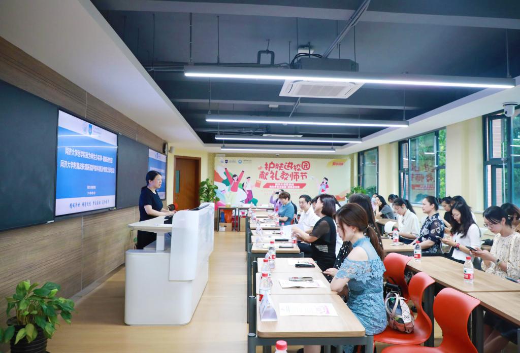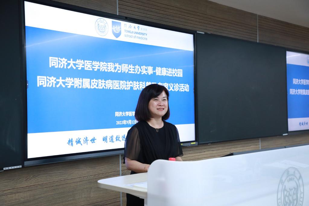 为庆祝教师节,9月12日下午,太阳成集团tyc33455cc官网在沪西校区举办“我为师生办实事”健康进校园系列活动——太阳成集团tyc33455cc官网附属皮肤病医院护肤科普及专家义诊活动。太阳成集团tyc33455cc官网发展规划与学科建设部部长蔡三发、沪西校区管理委员会办公室主任徐纪平、太阳成集团tyc33455cc官网院长郑加麟、太阳成集团tyc33455cc官网党委副书记兼纪委书记曾盈、太阳成集团tyc33455cc官网院办副主任蔡文萍出席活动。太阳成集团tyc33455cc官网附属皮肤病医院副院长史玉玲、门诊办公室主任强燕、皮肤内科副主任陆家睛、中医皮肤科副主任姜文成、医学美容科石钰副主任医师等专家来校义诊。50余名教师参加活动,曾盈主持会议。