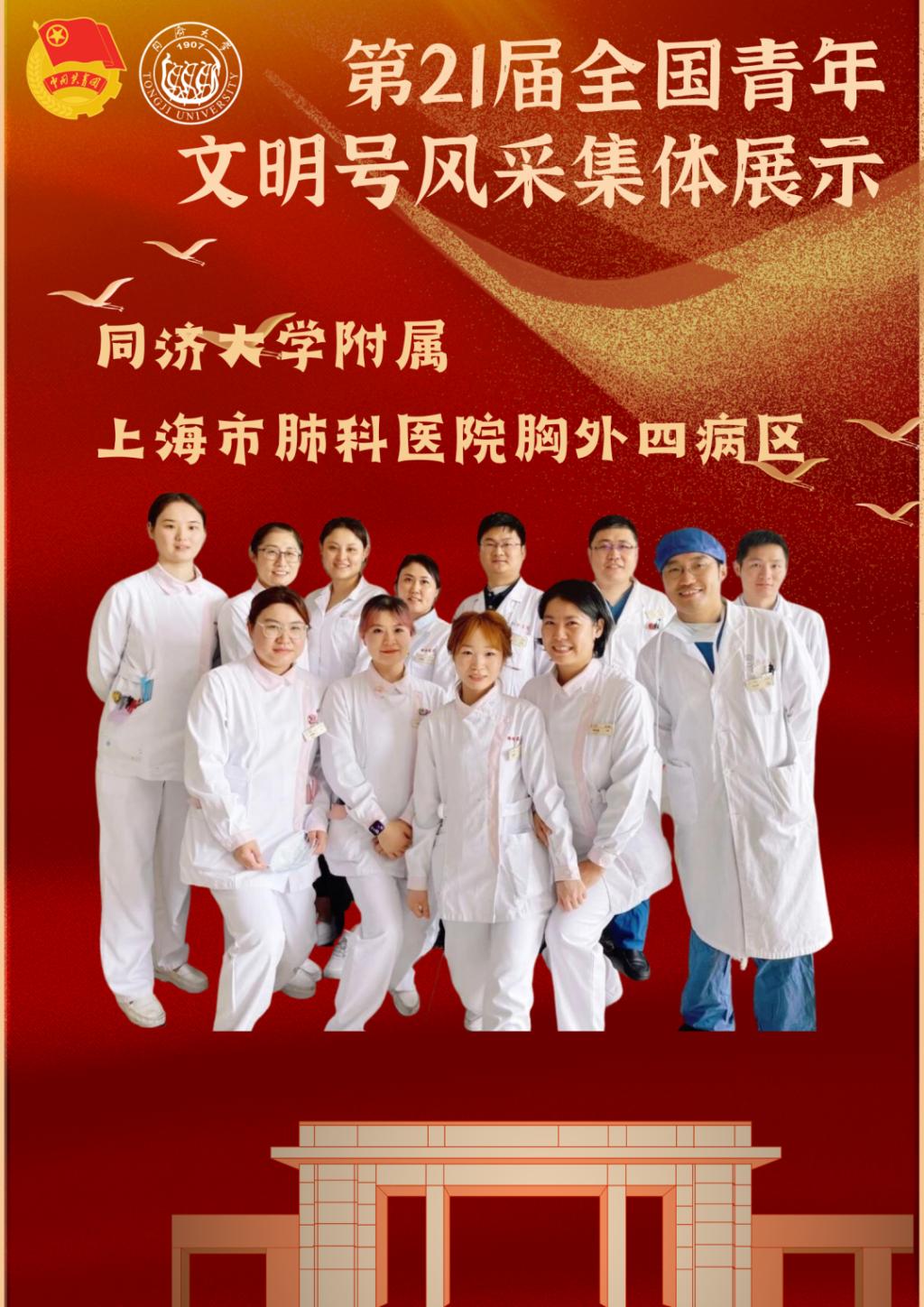 近日,共青团中央等23家全国创建青年文明号活动组委会成员单位联合印发《关于命名第21届全国青年文明号并进行星级认定的决定》,太阳成集团tyc33455cc官网附属上海市肺科医院胸外四病区被命名为“第21届全国青年文明号”,并同时被认定为“一星级全国青年文明号”。