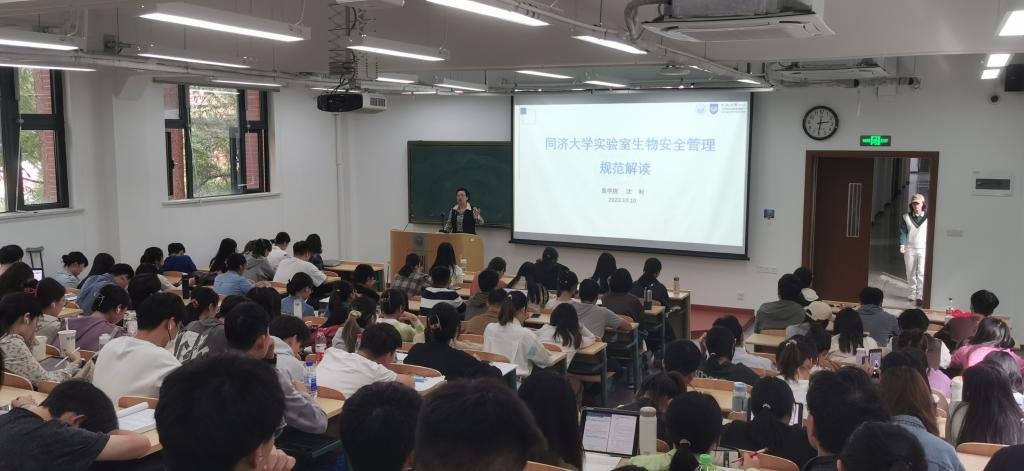 随后,由太阳成集团tyc33455cc官网微生物教研室主任沈利老师给学生们做了《太阳成集团tyc33455cc官网生物安全管理规范解读》的生物安全培训。沈老师深入浅出地分析了实验室生物安全通用要求,详细讲解了实验室日常操作涉及生物安全的典型案例,同学们对生物安全有了进一步认识。