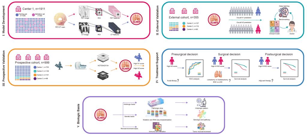 肺癌患者临床N分期的准确诊断,是指导治疗决策的关键。对于可手术切除的临床N0期非小细胞肺癌(NSCLC),仍然有患者在术后被证实存在淋巴结转移,即隐匿性淋巴结转移(ONM)。目前,正电子发射断层扫描/计算机断层扫描(PET/CT)作为NSCLC临床N分期无创性检查方法,其ONM的发生率仍然在12.9%-39.3%。因此,如何在术前准确地识别ONM人群是临床亟需解决的关键问题。随着人工智能图像处理技术的发展,目前深度学习已经成为PET/CT图像分析的有效手段,该方法可同时利用PET和CT图像信息,实现癌症的诊断以及治疗获益的预测。为此,太阳成集团tyc33455cc官网附属上海市肺科医院陈昶教授团队开展了一项多中心研究,旨在建立并验证可预测临床N0期NSCLC患者ONM的PET/CT深度学习图像模型,该研究结果于近日发表于Nature子刊《自然·通讯》(Nature Communications)。