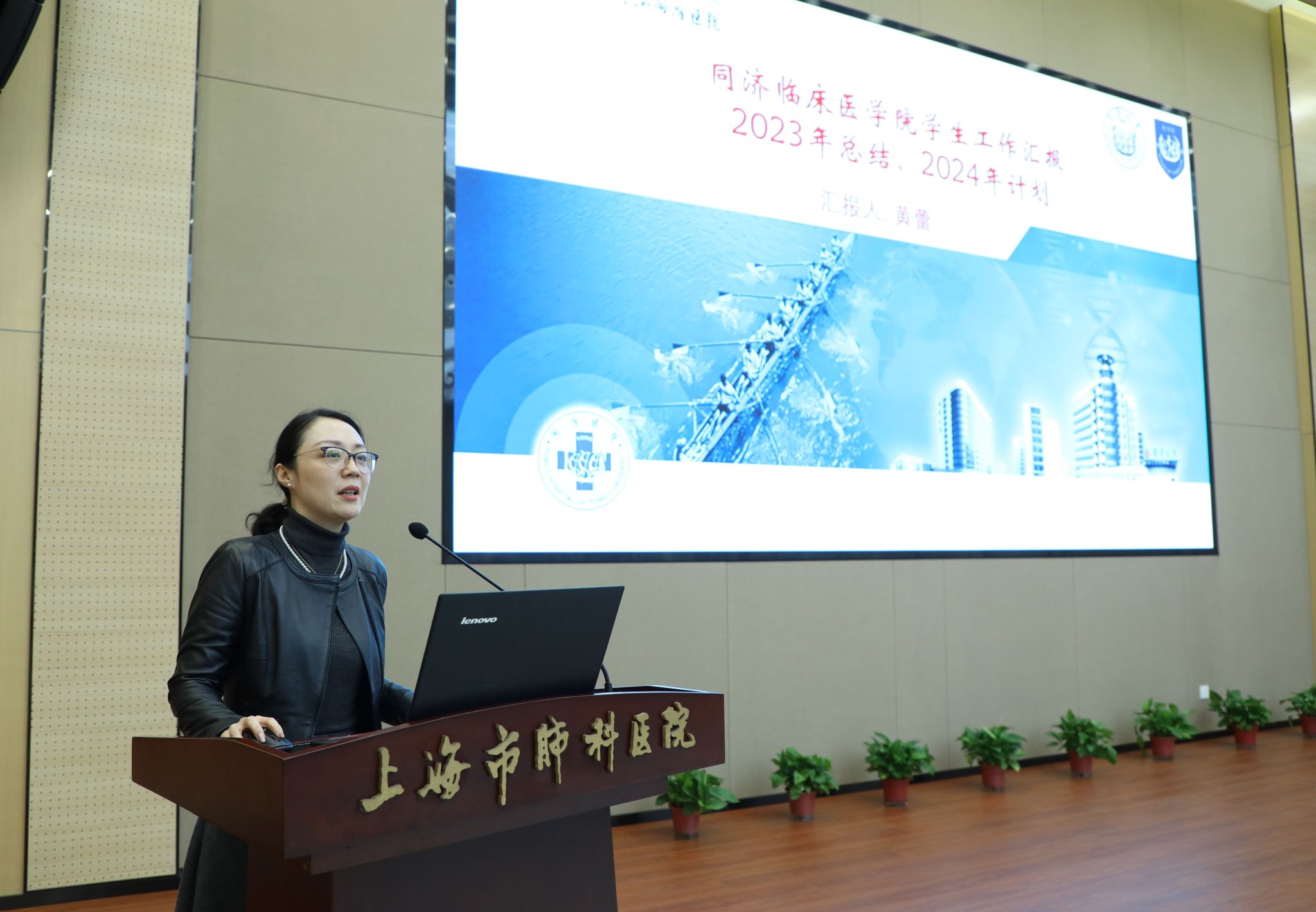 系部述职环节分别由附属第十人民医院本科生负责人杨佳敏、附属第十人民医院研究生负责人王园园、附属同济医院学生工作负责人黄蕾、附属同济医院学生工作负责人徐笑男、附属东方医院本科生负责人肖蕾、附属东方医院研究生负责人蒋杰、附属上海市肺科医院学生工作负责人沈瓅、附属妇产科医院学生工作负责人成星、附属杨浦医院本科生负责人张文杰、附属杨浦医院研究生负责人张小丽、附属养志康复医院本科生负责人邵俊杰、附属养志康复医院研究生负责人范辰辉、附属皮肤病医院学生负责人谭飞和附属上海市第四人民医院学生负责人冯蕾等14位老师围绕思政引领、日常管理、班团建设、特色工作等方面展开汇报。大家反思了困难点、总结了新做法、凝练了好经验、展示了新亮点,并对2024年工作进行了展望。