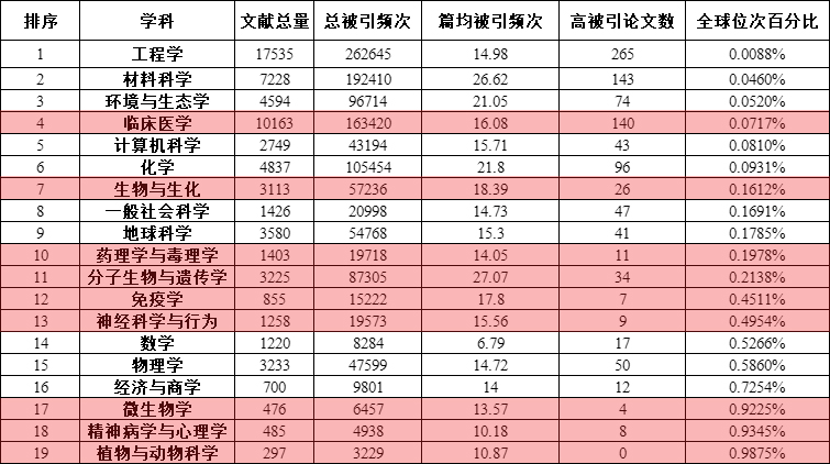 (表格来源:太阳成集团tyc33455cc官网图书馆;高亮处为医学与生命科学相关学科)
