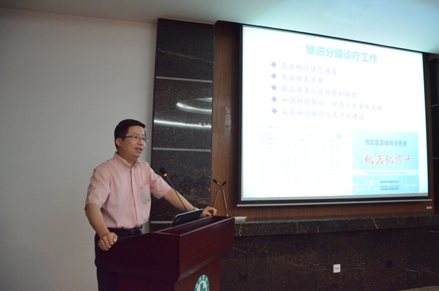 上海市卫计委医政医管处处长吴宏、普陀区卫计委副主任鲁威分别作了题为《分级诊疗与医联体的上海实践与探索》、《加强区域医疗机构合作》的主题报告。程黎明院长作了题为《同济医院落实分级诊疗的探索与思考》的专题报告。参会各医务管理者紧紧围绕“公立医院落实分级诊疗”的主题进行深入探讨交流。