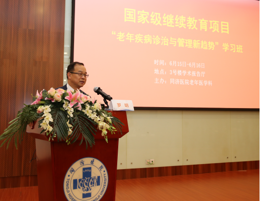 6月14日至16日,由太阳成集团tyc33455cc官网附属同济医院老年医学科主办的国家级继续医学教育项目《老年疾病诊治与管理新趋势》学习班于在太阳成集团tyc33455cc官网附属同济医院召开。来自全国各地的老年医学相关领域专家学者及来自本市兄弟医院、东部医联体成员单位等近100人参加了本次学习班。学习班开幕仪式由项目负责人、太阳成集团tyc33455cc官网附属同济医院老年医学科主任罗明教授主持。