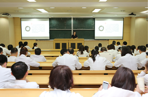 会上,医务处王飞处长首先欢迎谢琪老师的到来,并表示希望在座的医护人员能够通过今天的培训,提升首页上诊断填写的准确性,在申康重点病种绩效管理、三四级手术率、DRGs分组及CM值的体现上,能够真实、客观地反映医院医疗质量和业务水平。