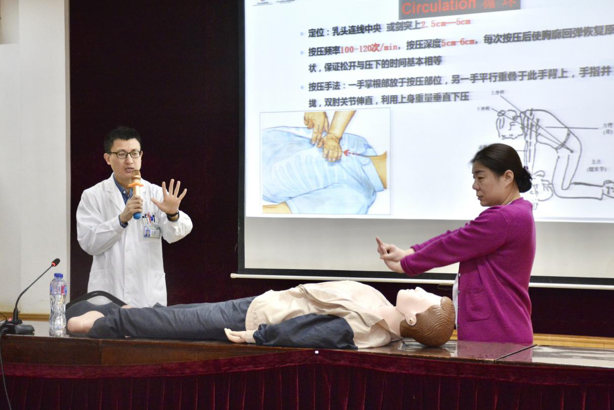 一直以来公共场所发生的意外猝死事件总会让人觉得惋惜,不由地设想:如果更多人能够掌握有效的急救知识,及时开展抢救会不会就能改变糟糕的结果?为了让旅客生命健康得到更高保障,3月31日,上海市第十人民医院肺心脑科普教育基地和虹桥机场消防急救保障部牵起手来,通过理论讲解和情景模拟,帮助机场工作人员能够识别急症早期发病信号,掌握院前心脏呼吸骤停、窒息、癫痫等急救技术。