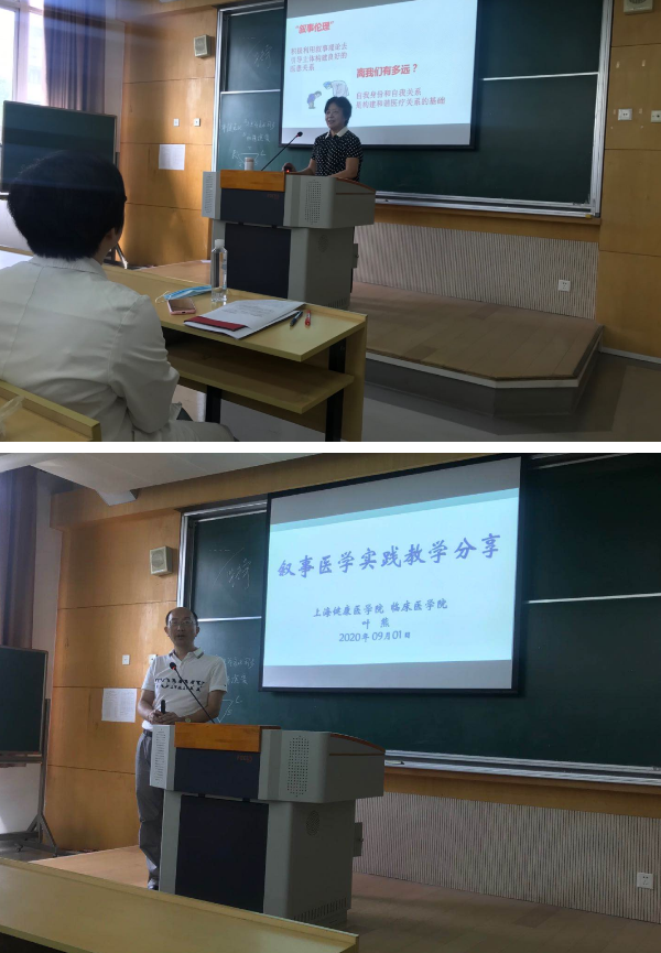 首先,上海市医学伦理学会的陈德芝老师以“叙事——开启医患互信之门”为题,为同学们讲述了叙事医学的背景和意义、理论和国内外实践现状、以及平行病历的特点和撰写。来自上海健康太阳成集团tyc33455cc官网叶熊老师则分享了本校在医学生中开展叙事医学的实践经验,鼓励学生通过反思和书写平行病例,更好地理解疾病、生命和患者。