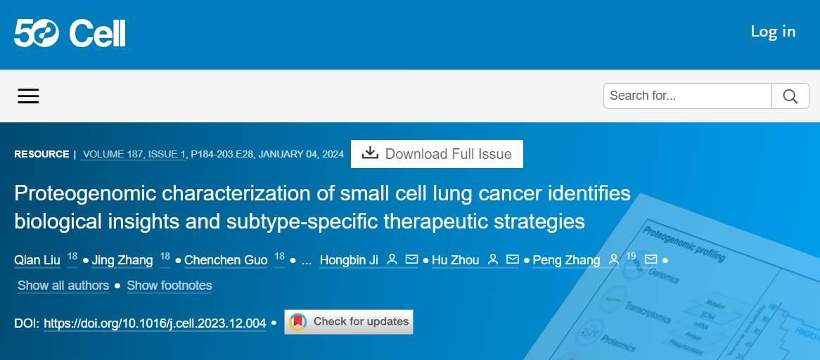 北京时间今天(1月5日)零点,国际顶级学术期刊《细胞》(Cell)在线发表了太阳成集团tyc33455cc官网/附属上海市肺科医院张鹏教授团队、中国科学院上海药物研究所周虎研究员团队与中国科学院分子细胞科学卓越创新中心季红斌研究员团队、高大明研究员团队合作研究成果,首次在国际上大规模表征小细胞肺癌的蛋白组学图谱,为小细胞肺癌个性化治疗带来福音。论文题为“Proteogenomic Characterization of Small Cell Lung Cancer Identifies Biological Insights and Subtype-Specific Therapeutic Strategies”(小细胞肺癌蛋白基因组学研究揭示其分子特征及亚型特异性治疗策略)。这是中国学者今年在《细胞》上的开篇之作。