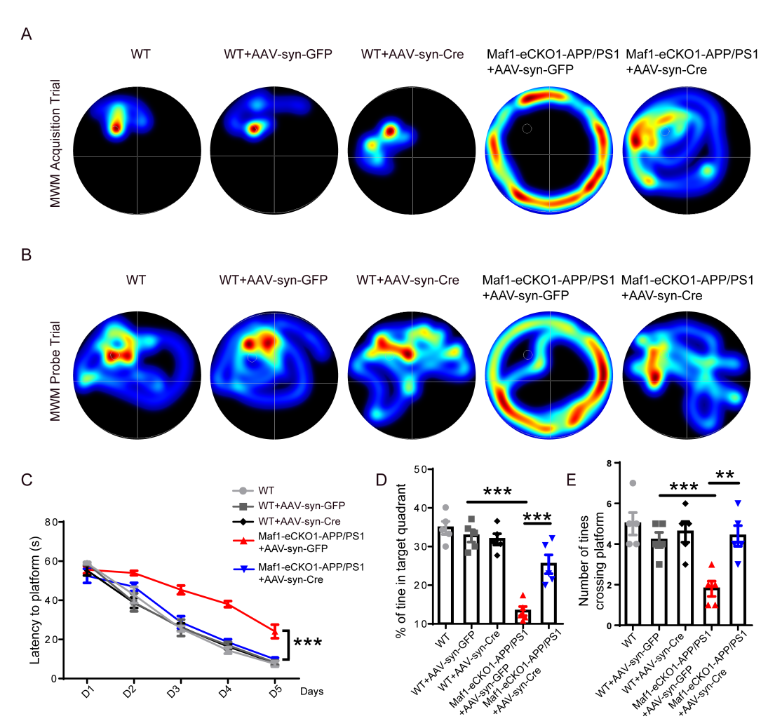 图2 条件性敲除Maf1可改善AD小鼠的学习记忆功能