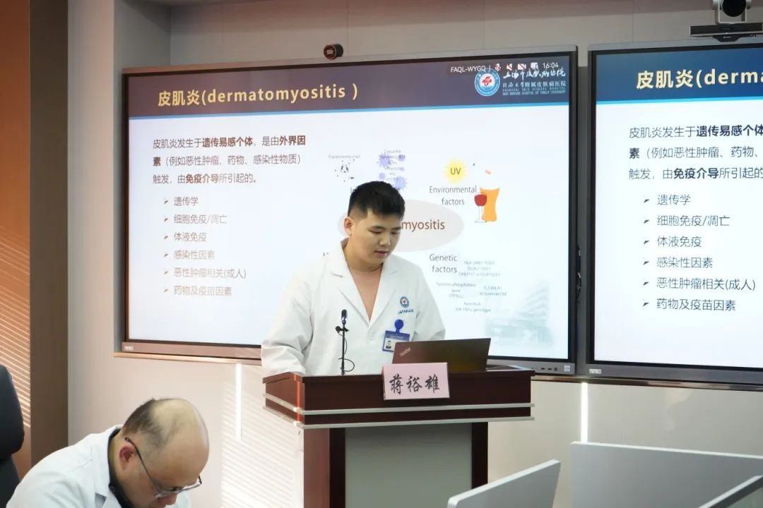 住培学员蒋裕雄展开讲述皮肌炎的发病机制。