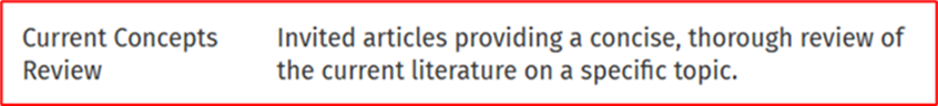自1980年起,JBJS以「约稿+同行评审」的形式,每月发表1篇CCR综述。CCR是JBJS发表难度最大、篇幅最长的论文类型,对当前骨科界的热点理论进行综述,以指导全球骨科医师的临床实践。