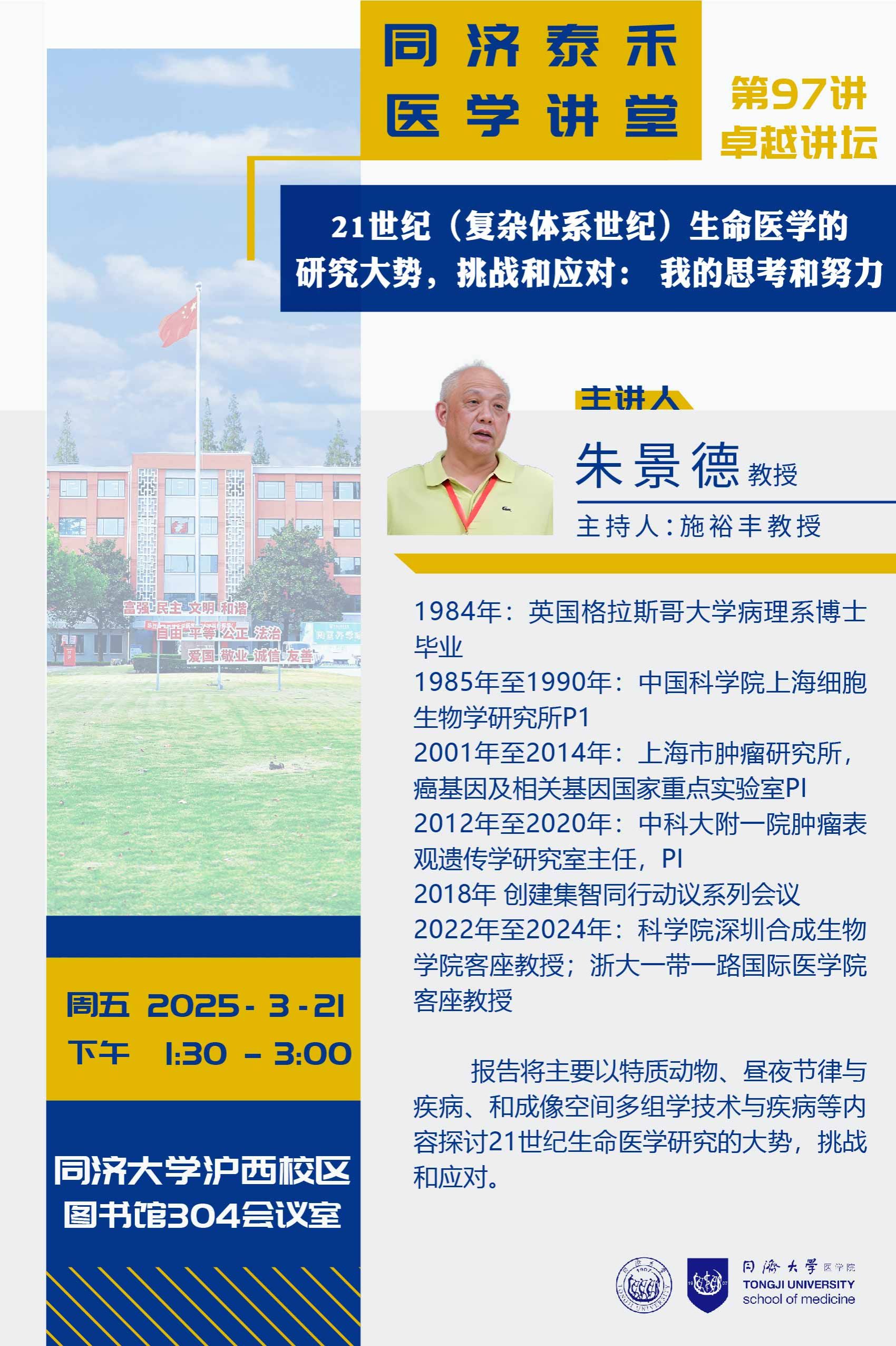 报告题目:21世纪(复杂体系世纪)生命医学研究的大势,挑战和应对: 我的思考和努力