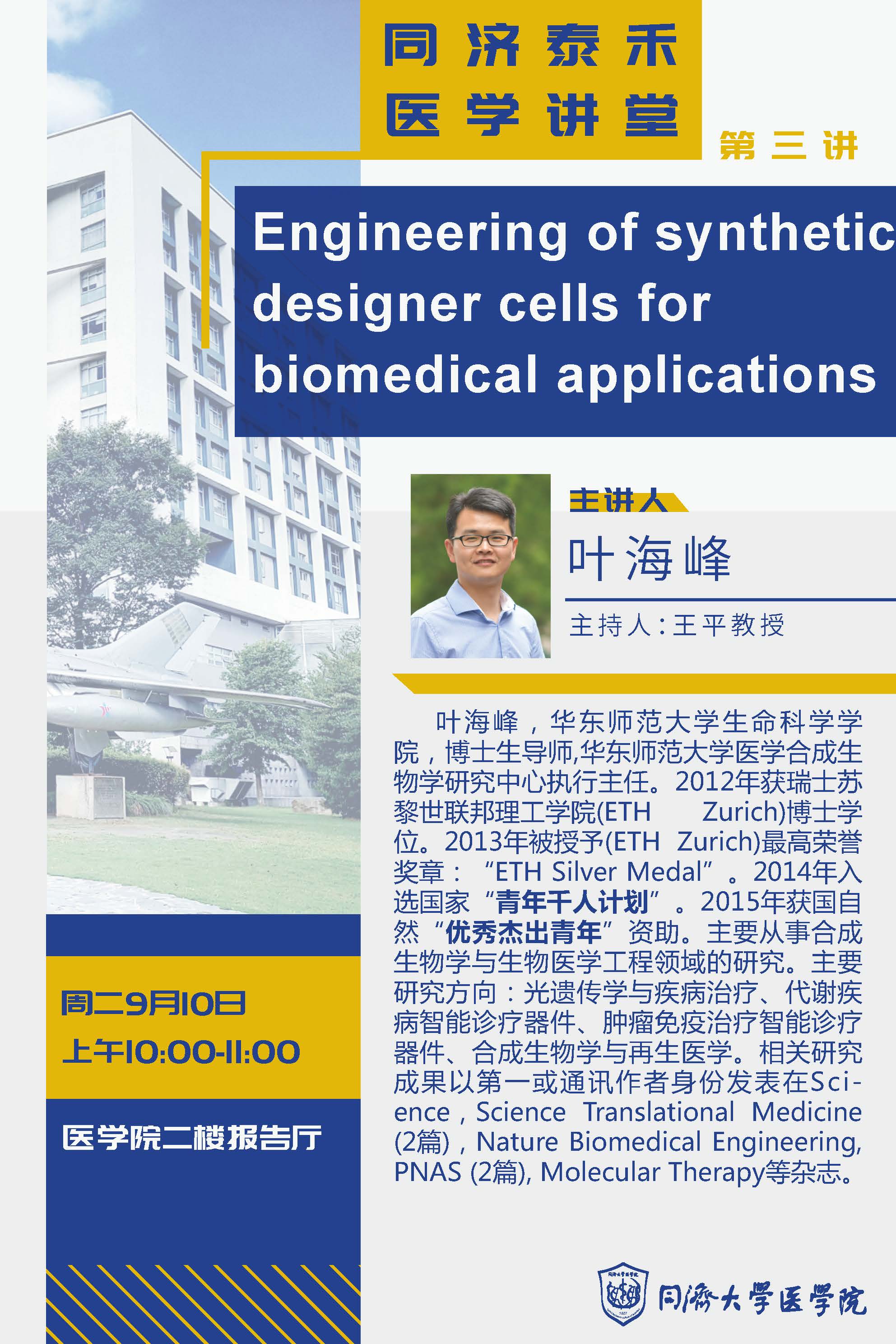 报告题目:Engineering of synthetic designer cells for biomedical applications