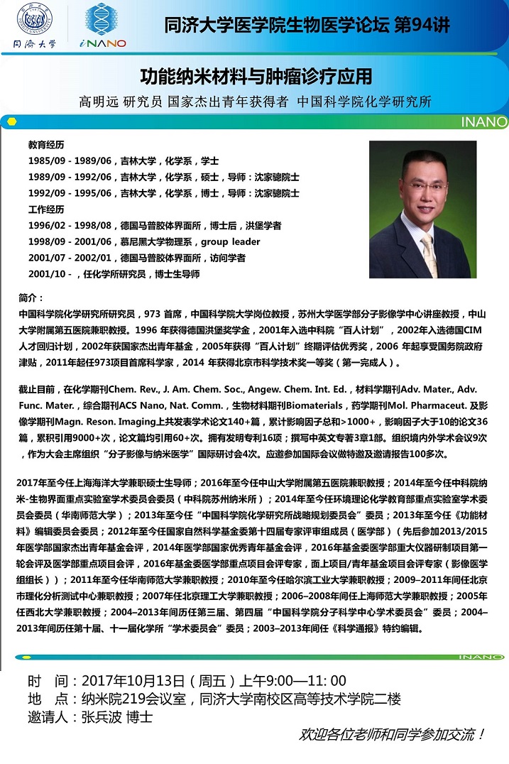 生物医学论坛第94讲:功能纳米材料与肿瘤诊疗应用