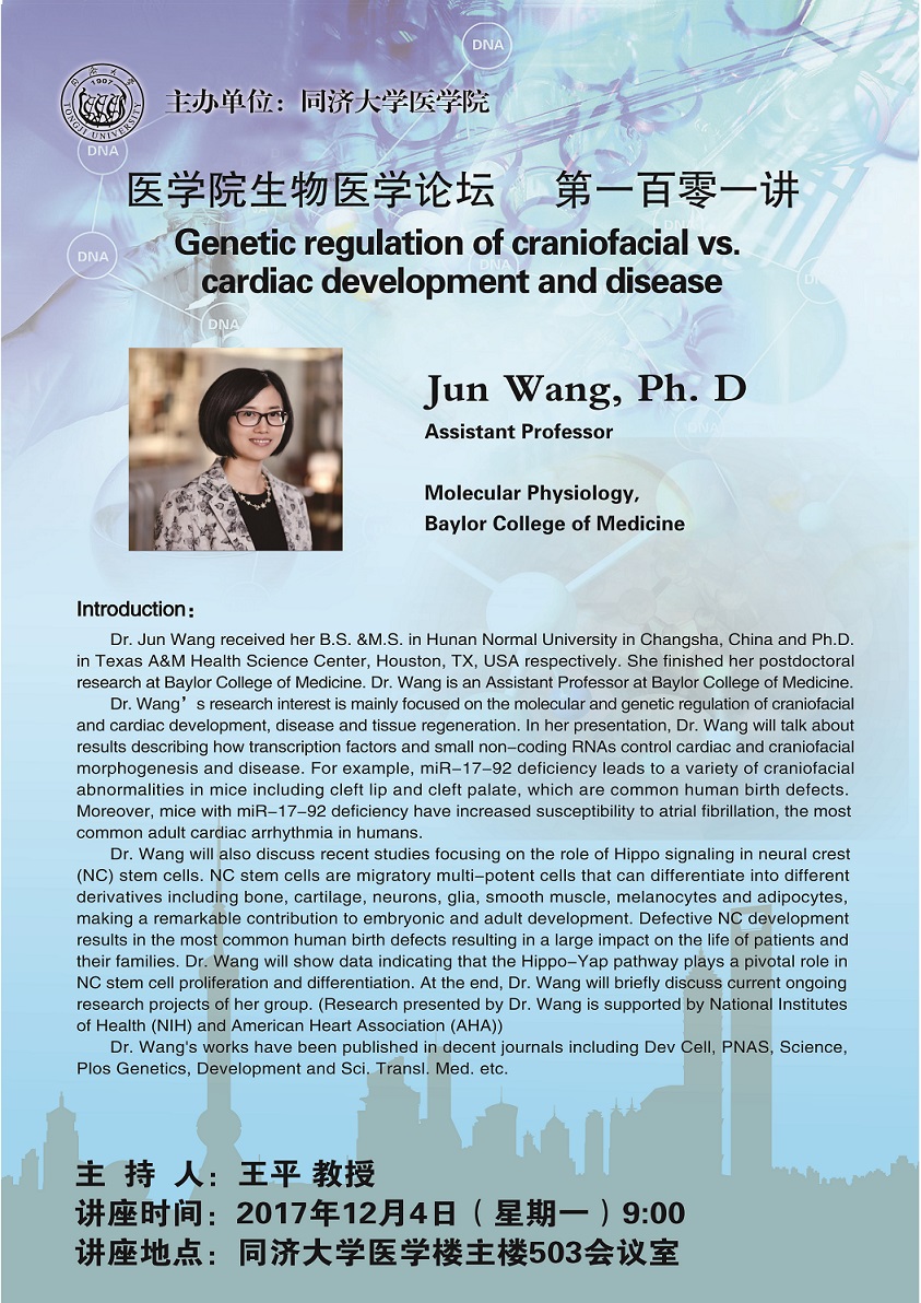 生物医学论坛第101讲:Genetic regulation of craniofacial vs. cardiac development and disease