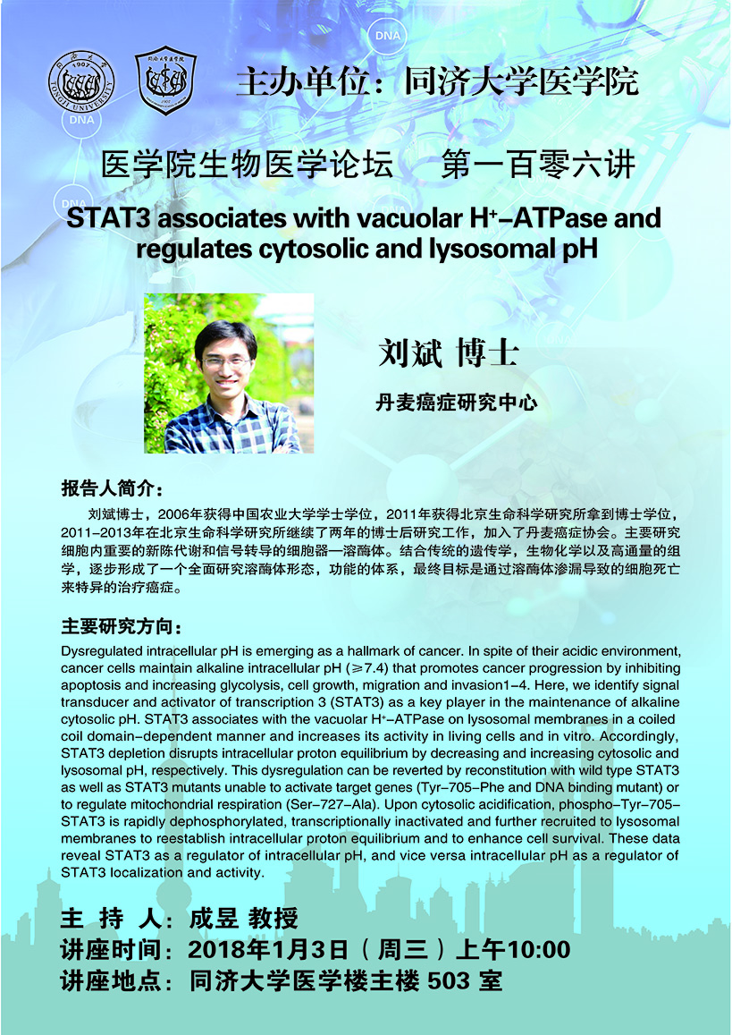 生物医学论坛第106讲:STAT3 associates with vacuolar H+-ATPase and regulates cytosolic and lysosomal pH