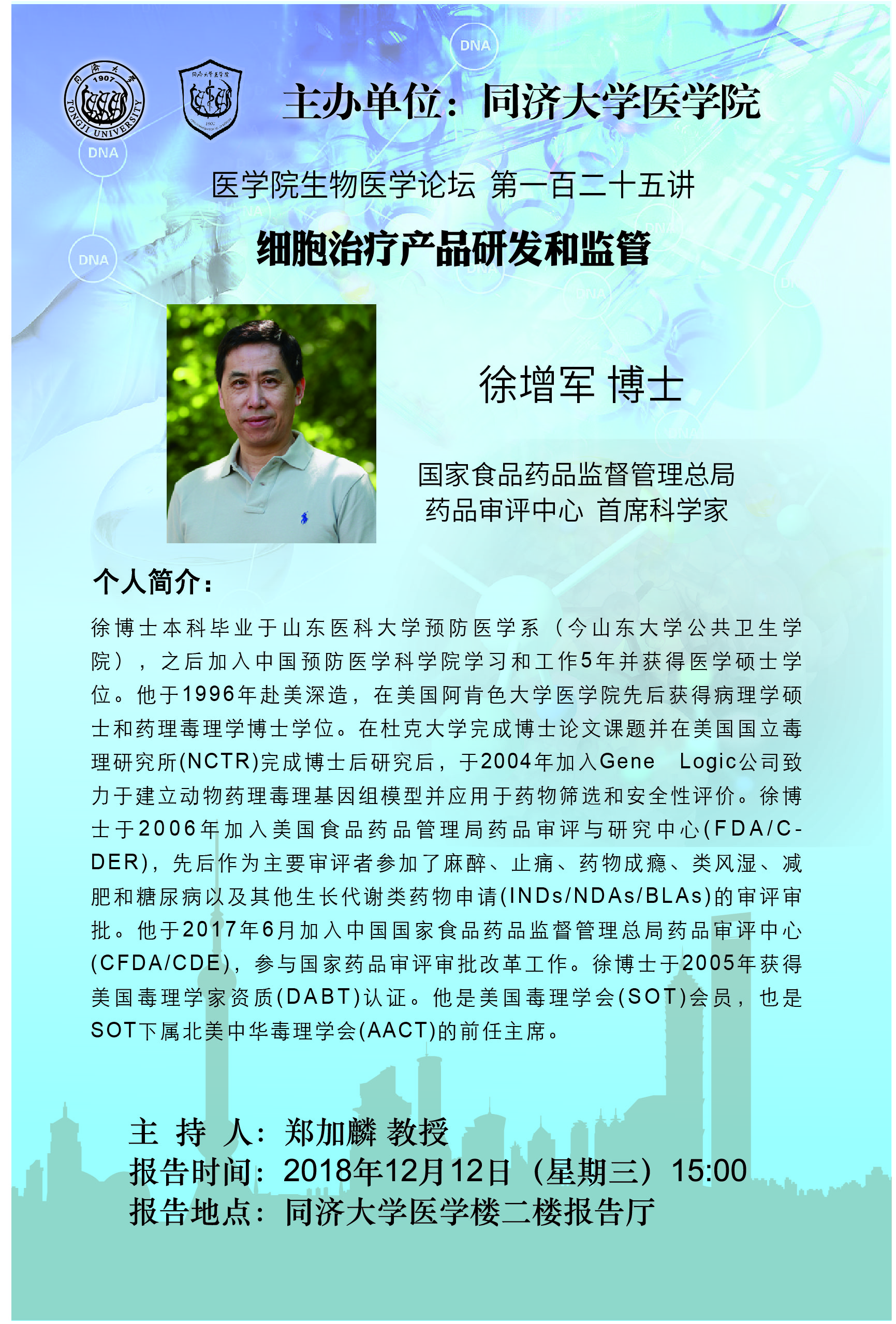 【院级高等讲堂】生物医学论坛第125讲:细胞治疗产品研发和监管
