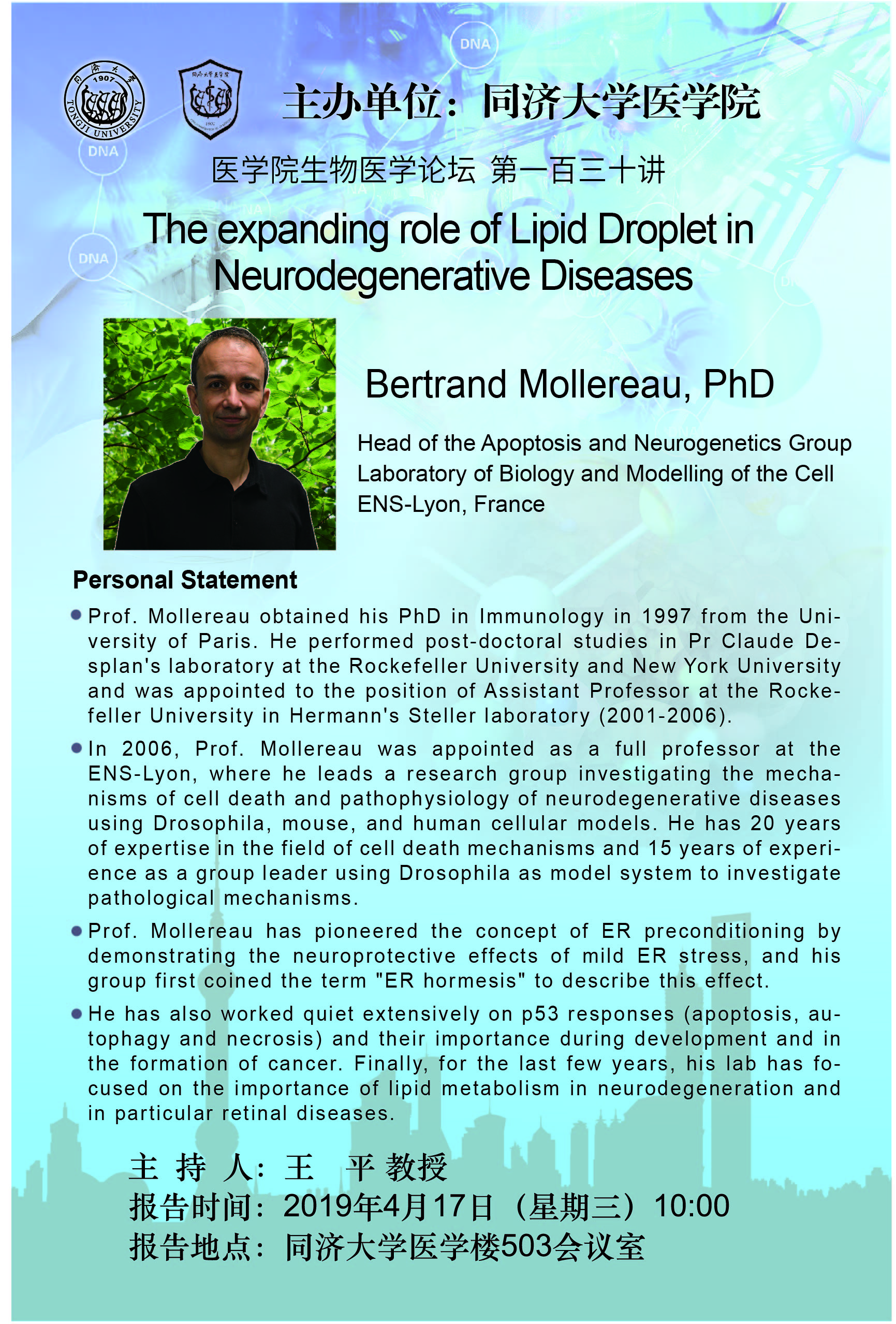 报告题目:The expanding role of Lipid Droplet in Neurodegenerative Diseases