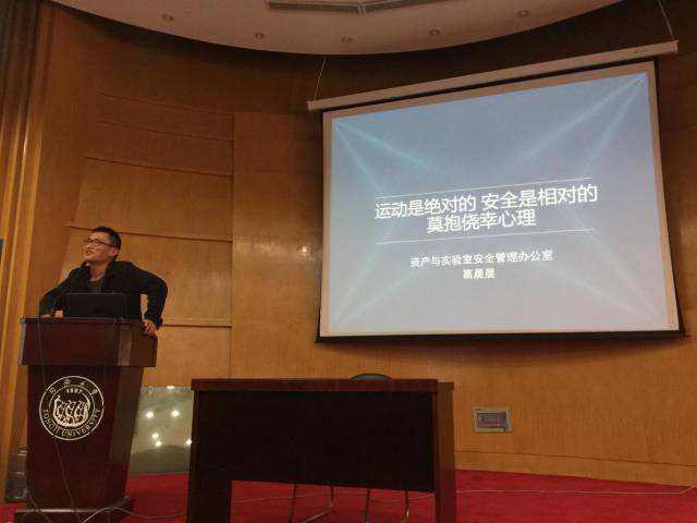 实验室安全是需要牢记心中的大事。只有严格遵守了实验室安全规则,才能为我们自身及他人的人身安全、财产作出保障。同学们对此次讲座反响热烈,明白了必须掌握实验室安全的相关准则,提高自身的素质,充分了解实验室安全的重要性,懂得不同的实验需要有不同的防护措施等。