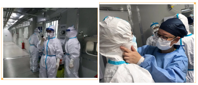 此次援鄂行动中,附属杨浦医院的八大专科护理团队成员分三批驰援武汉,第一批在小年夜集合出发,第二批在大年初四下午集合出发,第三批即王静老师所带领的护理团队与医生团队于2月19日出发,整建制地支援雷神山医院。整建制有利有弊,优势在于团队成员有默契,团队合作有保障,弊端是无法更好地进行取长补短、交流学习。出征武汉前,面对未知与病毒,大家还没有做好心理上的准备,比较恐慌与不安。19日下午到达后,整个队伍氛围有些压抑。王静老师介绍,队伍成员中有一部分是很年轻的护士,甚至都不敢向父母说自己到了武汉。密集式护理对医护人员来说是很大的考验,只要有一个人疏忽,就是“全军覆没”。在这样的心理高压下,王静老师注意到有人红了眼眶。