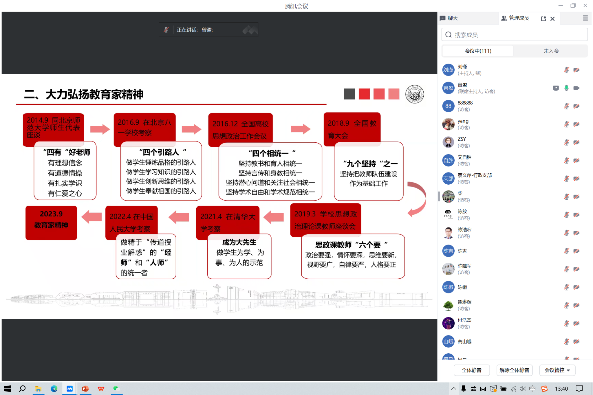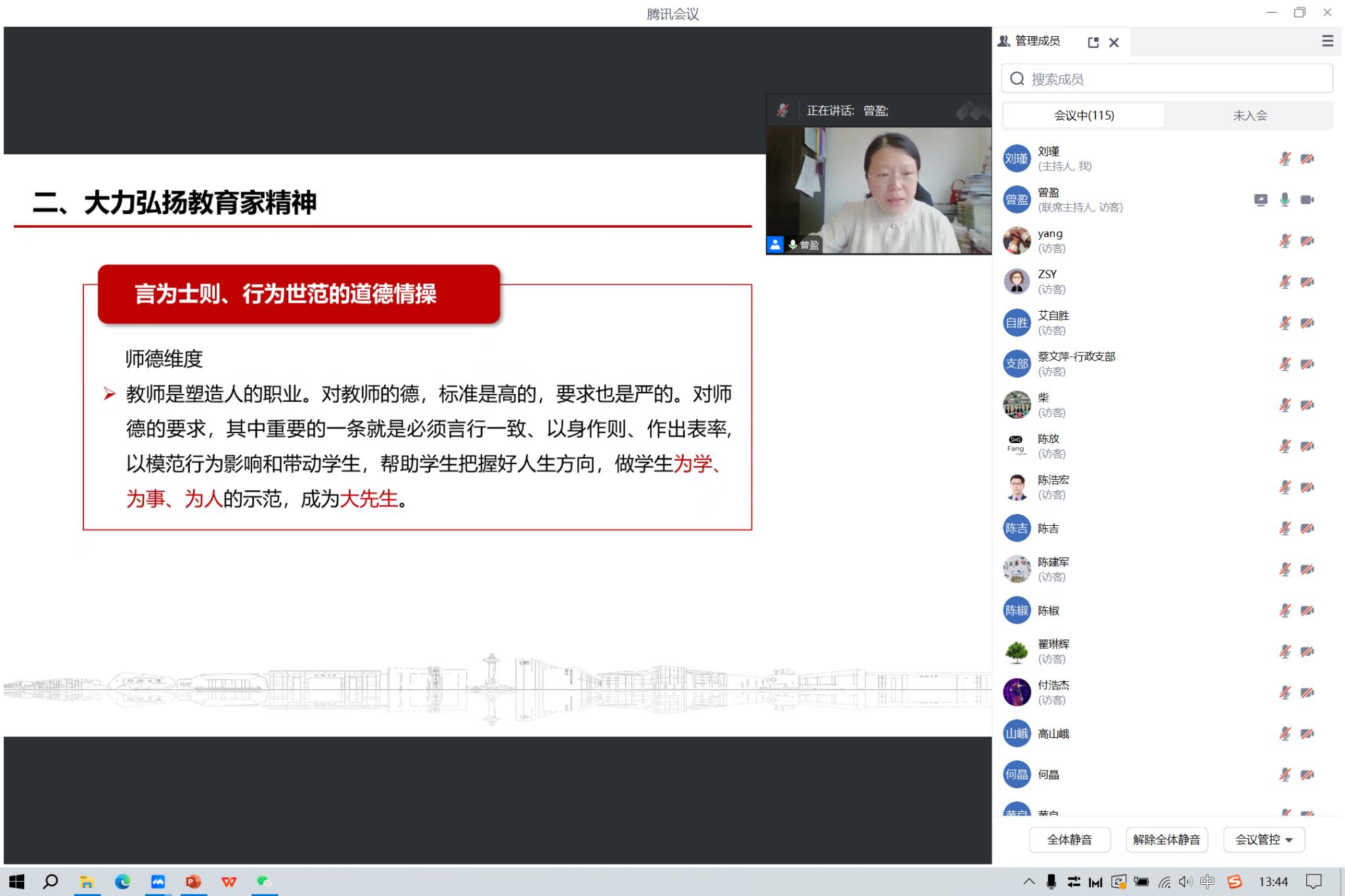 为全面贯彻落实全国教育大会精神,抓好师德师风建设,持续净化教书育人环境。2024年11月12日下午,太阳成集团tyc33455cc官网党委开展了第十四期“初心讲堂”,由太阳成集团tyc33455cc官网党委副书记曾盈主讲,题目为师德师风失范案例警示教育。学院120余名教师通过线上的方式参与了本次讲座。