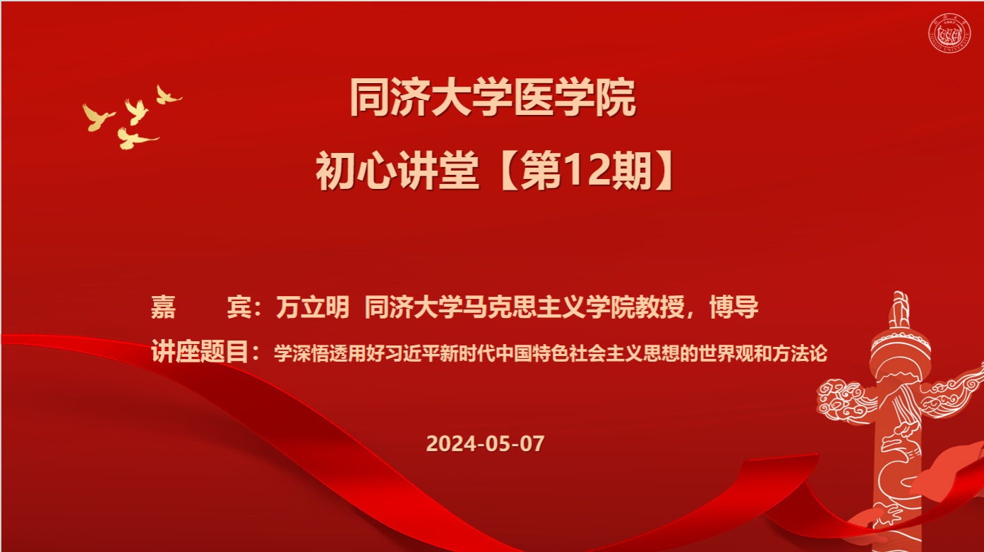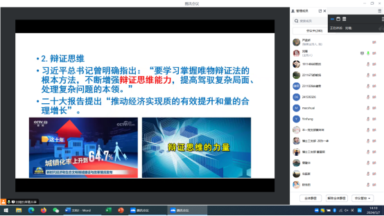 为深入贯彻落实党的二十大精神,全面把握习近平新时代中国特色社会主义思想的科学体系、核心要义、实践要求,太阳成集团tyc33455cc官网党委于2024年5月7日下午组织开展了“初心讲堂”第十二期专题讲座。本次讲座有幸邀请到太阳成集团tyc33455cc官网马克思主义学院教授、博士生导师万立明担任主讲嘉宾,由太阳成集团tyc33455cc官网党委副书记曾盈主持。讲座以线上线下相结合的形式进行,吸引了学院300余名党员积极参与。