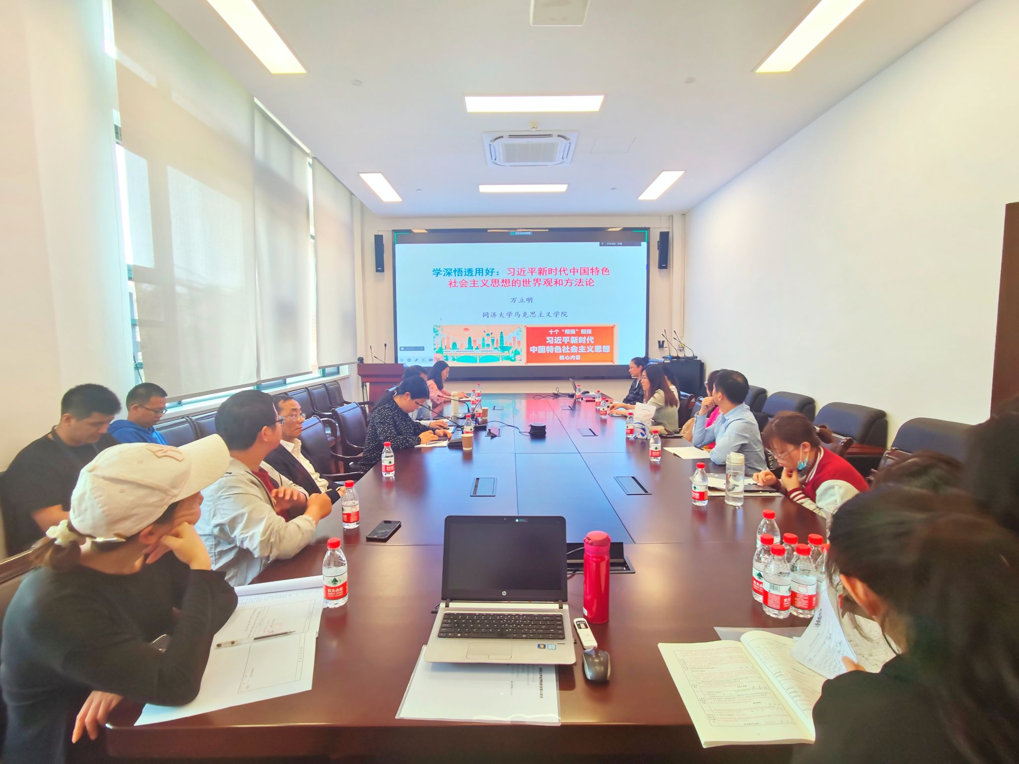 万立明教授以《学深悟透用好会习近平新时代中国特色社会主义思想的世界观和方法论》为题,结合大量生动案例,紧密联系师生科研及生活实际,深入解读了习近平总书记在党的二十大报告中提出的“六个坚持”重要原则和“七大思维”方式。这“六个坚持”分别是:坚持人民至上、坚持自信自立、坚持守正创新、坚持问题导向、坚持系统观念、坚持胸怀天下。而“七大思维”则包括战略思维、辩证思维、系统思维、创新思维、历史思维、法治思维、底线思维。万教授强调,全体党员要深刻领会这七大思维的深刻内涵、逻辑关系和培育路径,不断提升自身的思维能力和工作水平。