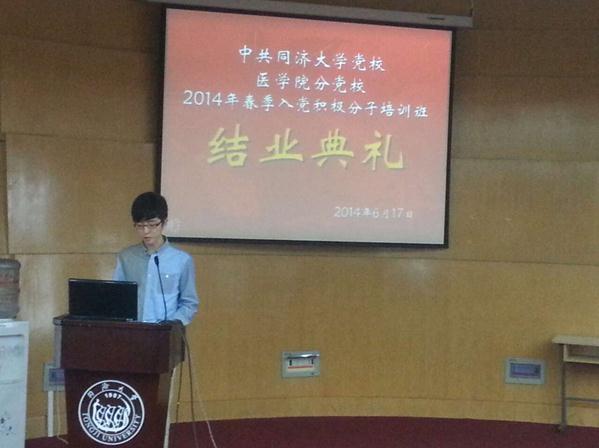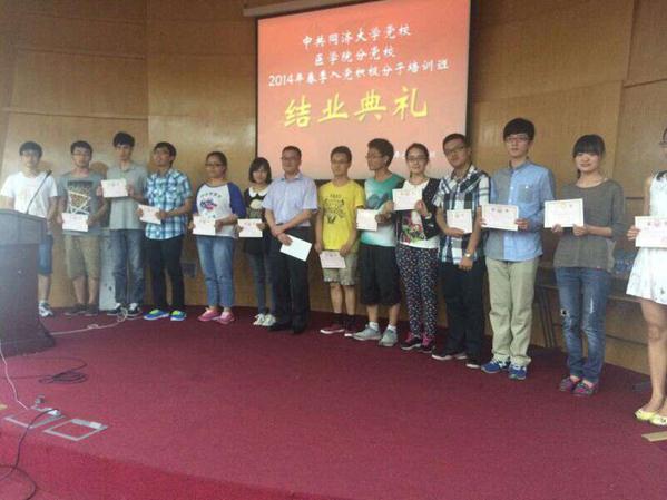2014年6月17日下午14时,太阳成集团tyc33455cc官网报告厅座无虚席,中共太阳成集团tyc33455cc官网党校医学与生命科学分党校2014年春季入党积极分子培训班结业典礼在这里隆重举行,医学与生命科学联合党委书记、医学与生命科学分党校校长姜成华教授、太阳成集团tyc33455cc官网党总支副书记徐纪平老师等领导出席了本次典礼。本次毕业典礼由太阳成集团tyc33455cc官网学工办辅导员苏娜老师主持。
