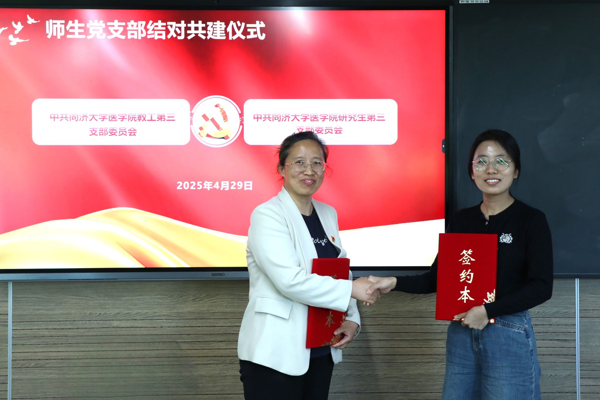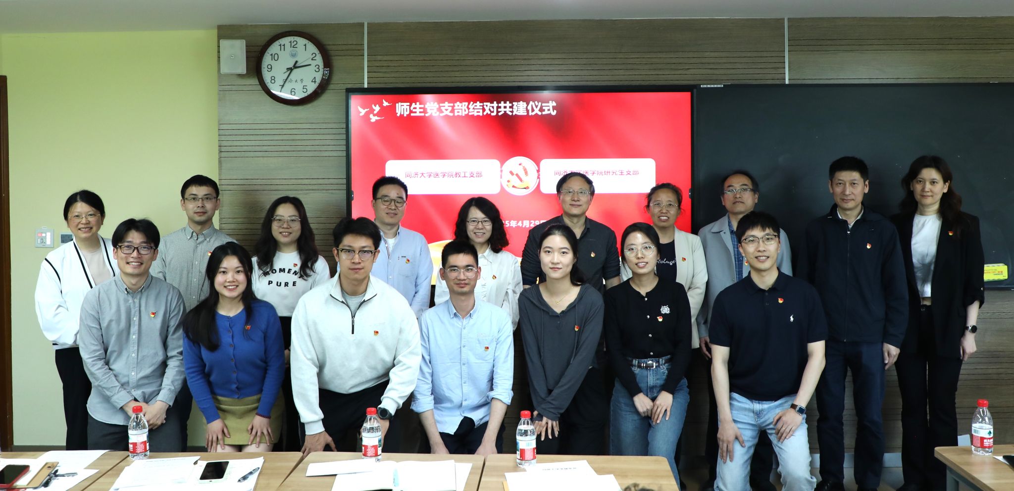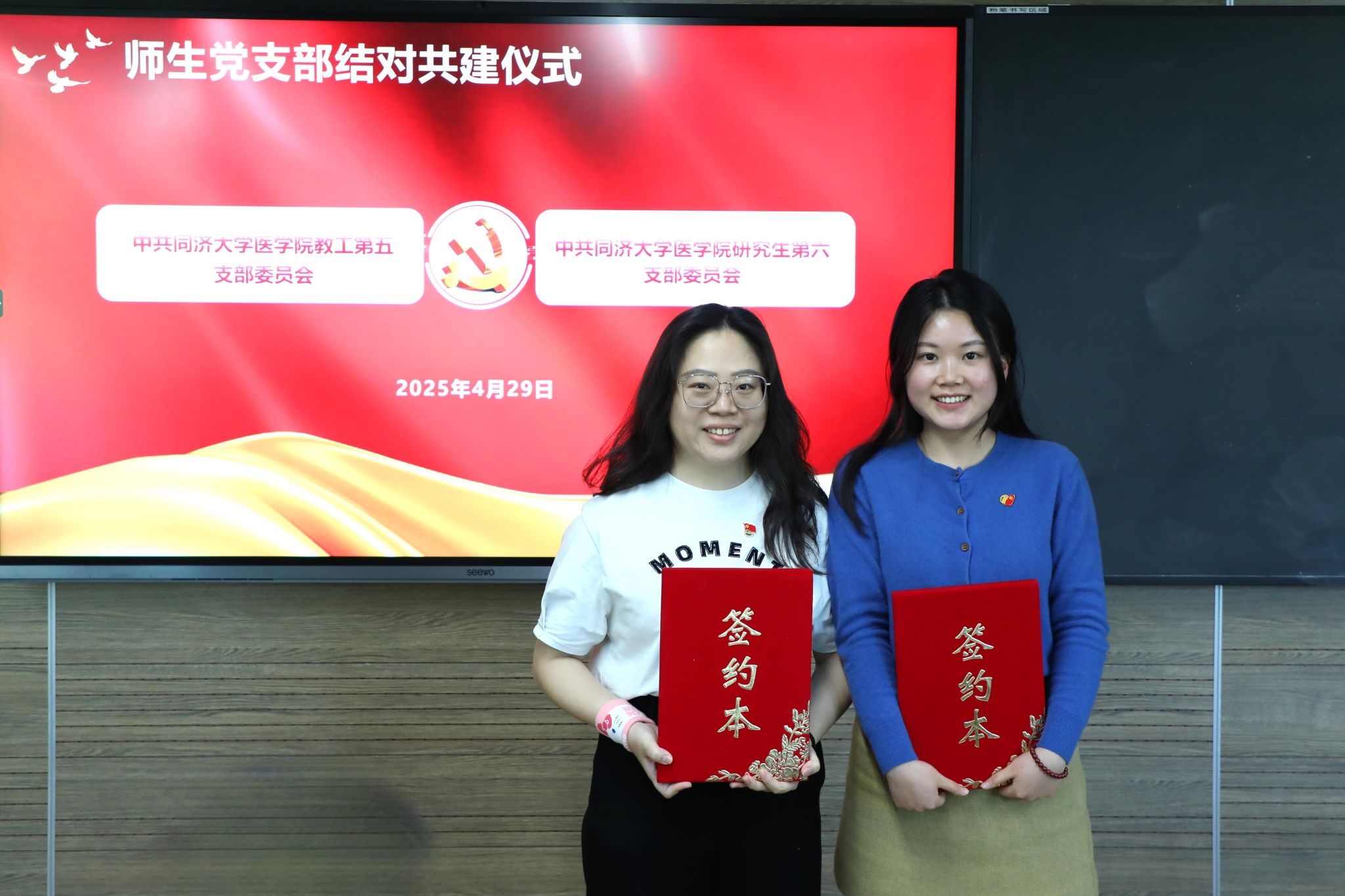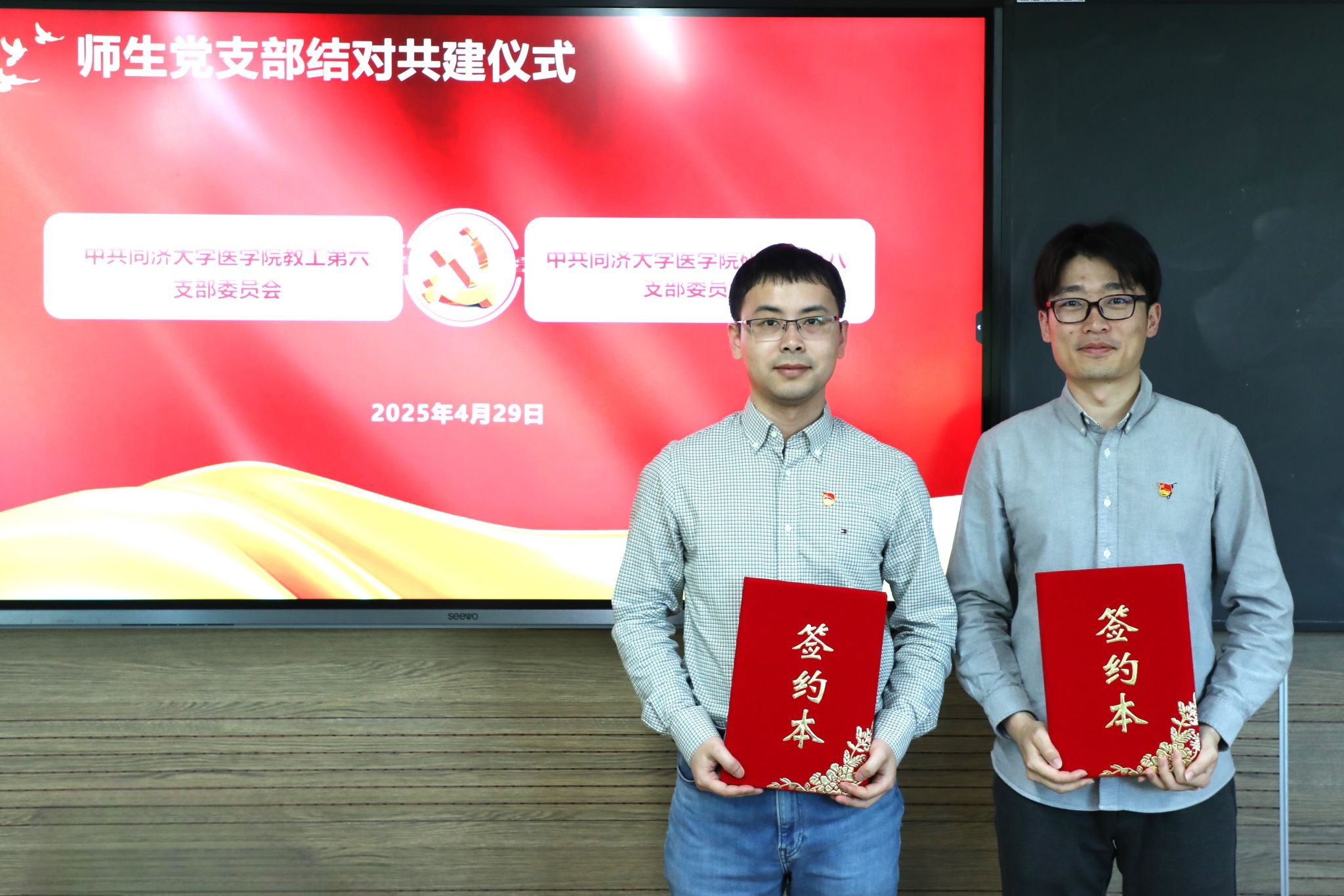随后,举行了教工党支部与基础博士研究生党支部的结对共建仪式。双方支部书记签署了共建协议,并合影留念。在结对共建的框架下,学院的师生党支部将遵循协同育人、共享双赢、可持续发展的原则,致力于探索并建立一个优势互补、资源共享的师生党建共建育人机制。