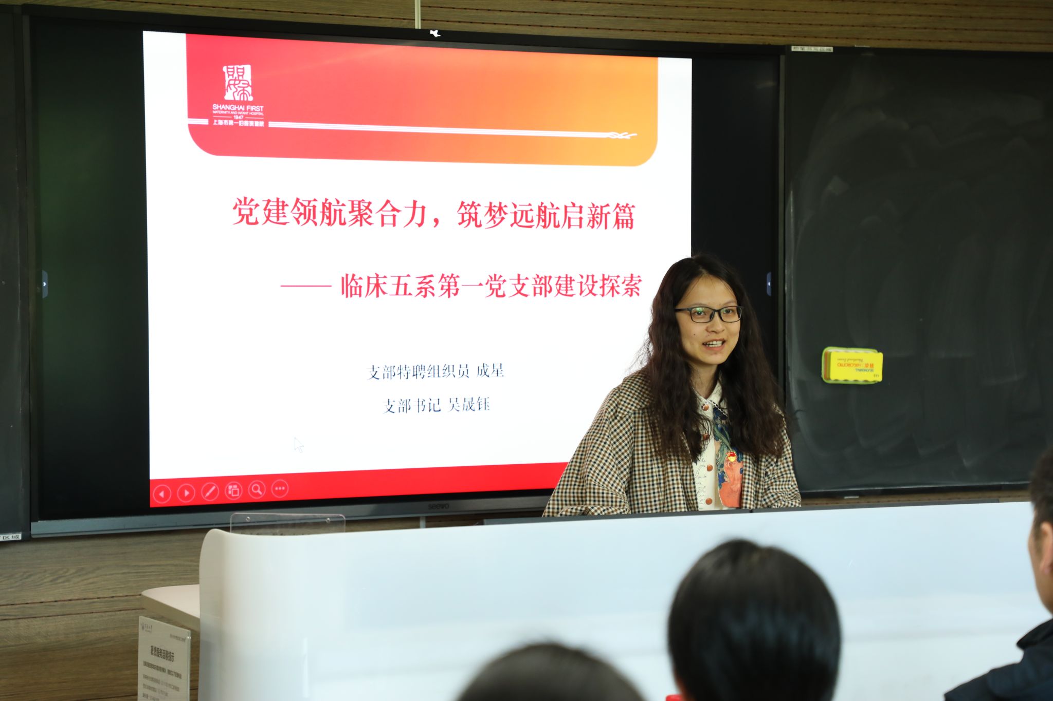 接着,党支部书记分享支部建设与管理经验。研究生第八党支部书记张善钧从党建带团建的内涵与意义、团建促党建的路径与方法、未来工作的思考等三个方面进行分享。临床五系第一党支部书记吴晟钰主要从支部总体情况、理论学习形式、发挥专业优势开展特色实践活动等三个方面进行分享。
