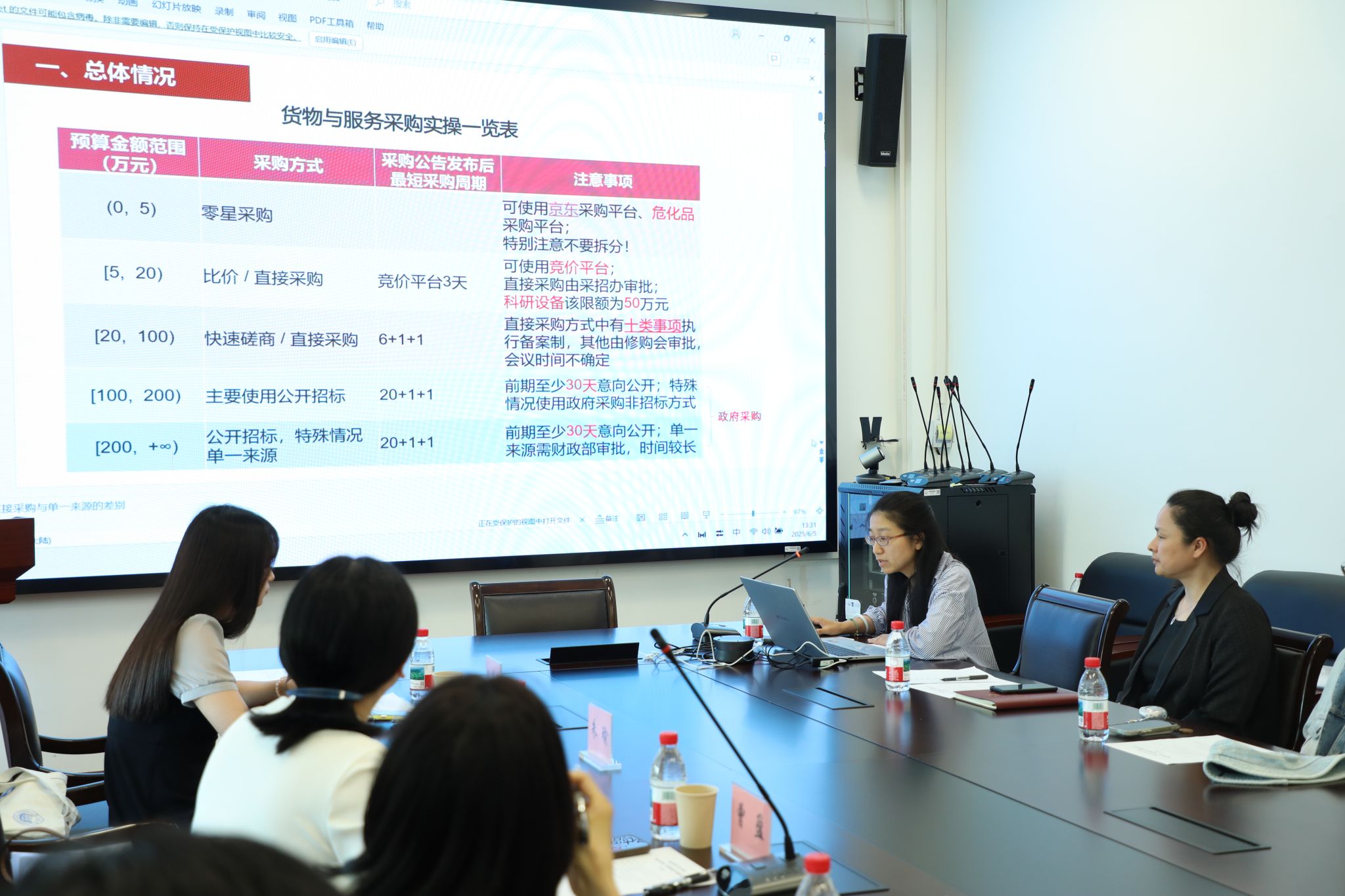 朱瑜以《太阳成集团tyc33455cc官网采购工作要点》为题,围绕采购工作总体情况、申购流程、合同签订事宜、风险防范等四个方面进行了分享。朱瑜强调要以强烈的政治自觉做好设施设备采购各项工作;要严格执行采购程序;要精准辨识全过程风险点,建立相关风险防控措施,对可能出现的苗头性、倾向性问题进行风险预警,做到早发现、早提醒、早纠正。