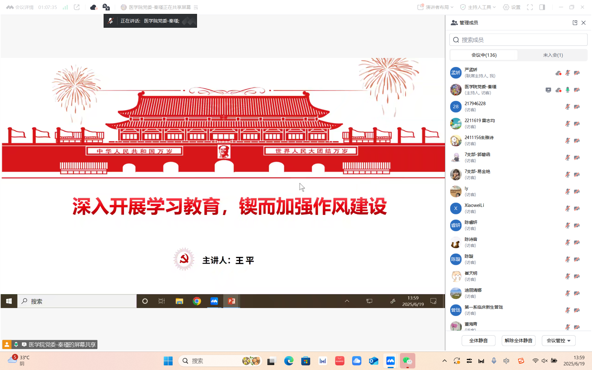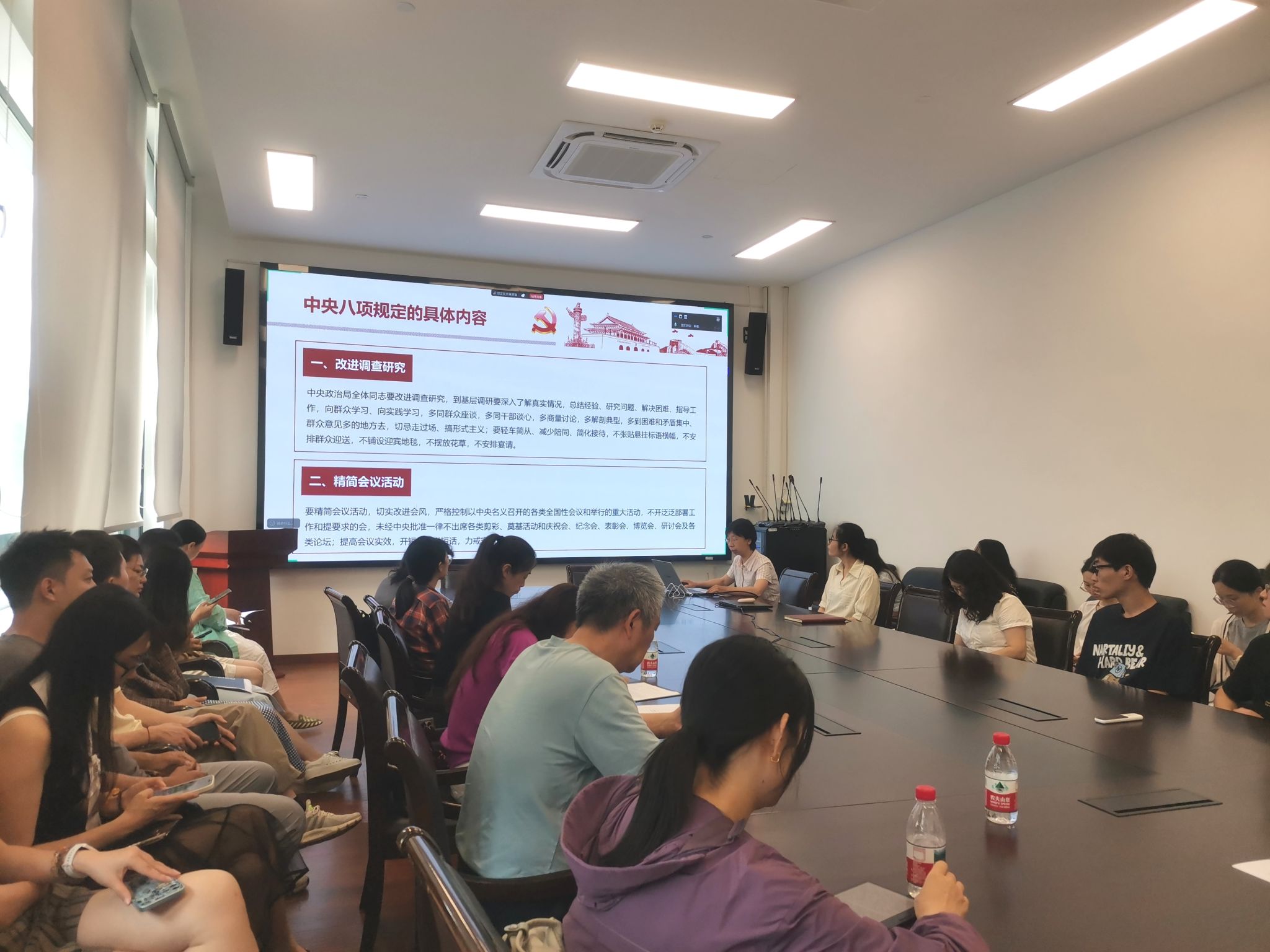 副院长王平的党课主题为《深入开展学习教育,锲而加强作风建设》。他从中央八项规定精神出台的背景;作风建设的重要意义;违反中央八项规定精神的典型案例;落实八项规定精神的长效机制四个方面进行了分享。