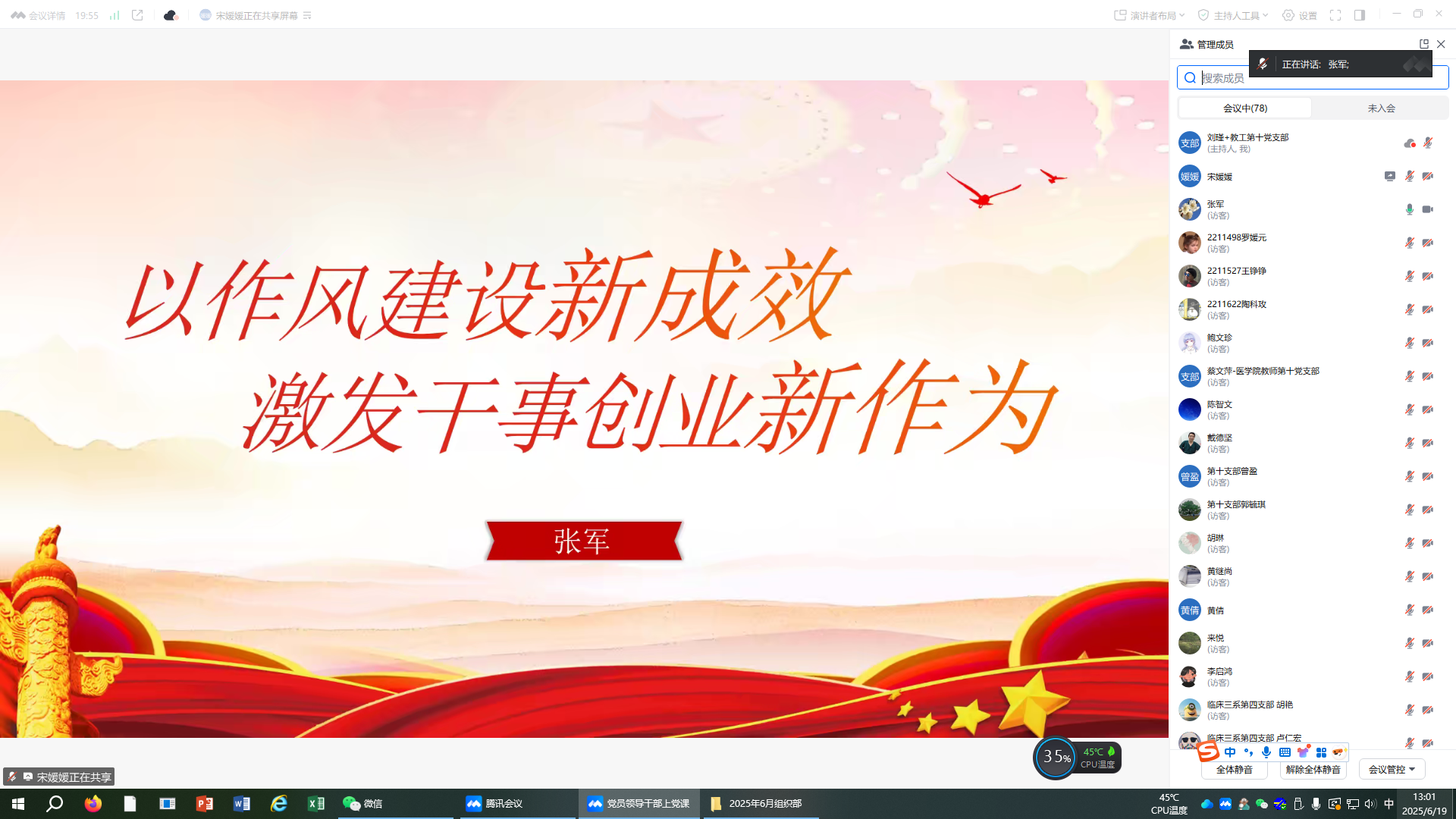 医管处处长张军的党课主题为《以作风建设新成效,激发干事创业新作为》。张军从深刻领悟中央八项规定精神的重要内涵;深刻认识加强党的作风建设的重大意义;以自我革命精神推进党的作风建设三个方面进行了分享。