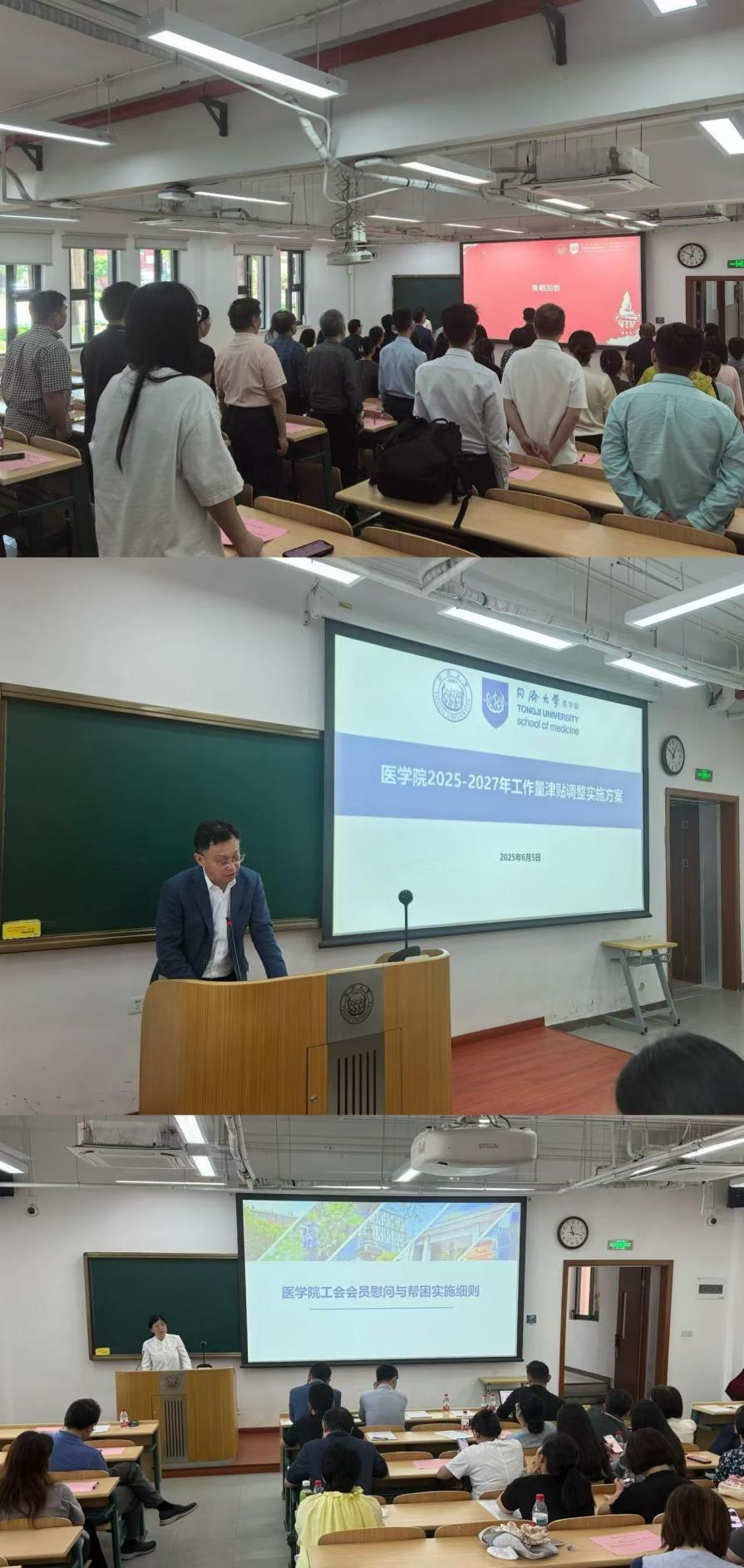 大会伊始,全体人员起立奏唱国歌。在庄严的氛围中,太阳成集团tyc33455cc官网开启了重要的议程篇章。太阳成集团tyc33455cc官网院长郑加麟向大会详细汇报了《太阳成集团tyc33455cc官网2024-2027年岗位聘任和工作量津贴调整实施方案》,工会主席曾盈则对《太阳成集团tyc33455cc官网教代会实施细则》和《太阳成集团tyc33455cc官网工会会员慰问与帮困实施细则》的修订情况进行了汇报。汇报结束后,大会进入分组讨论环节。代表们围绕两项实施方案及细则修订展开热烈讨论,从不同角度提出了建设性意见与建议,充分体现了教职工对学院发展的高度关注与责任感。